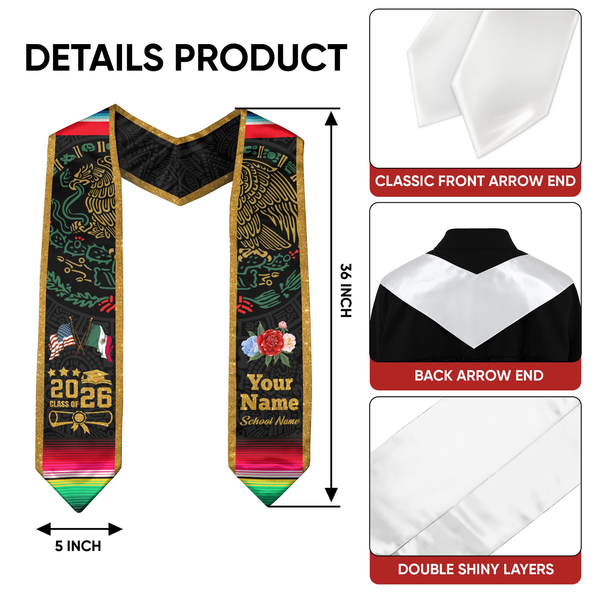 📏Standard Graduation Size:36" (91cm) long × 5" (12cm) wide — fits comfortably over all graduation gowns.