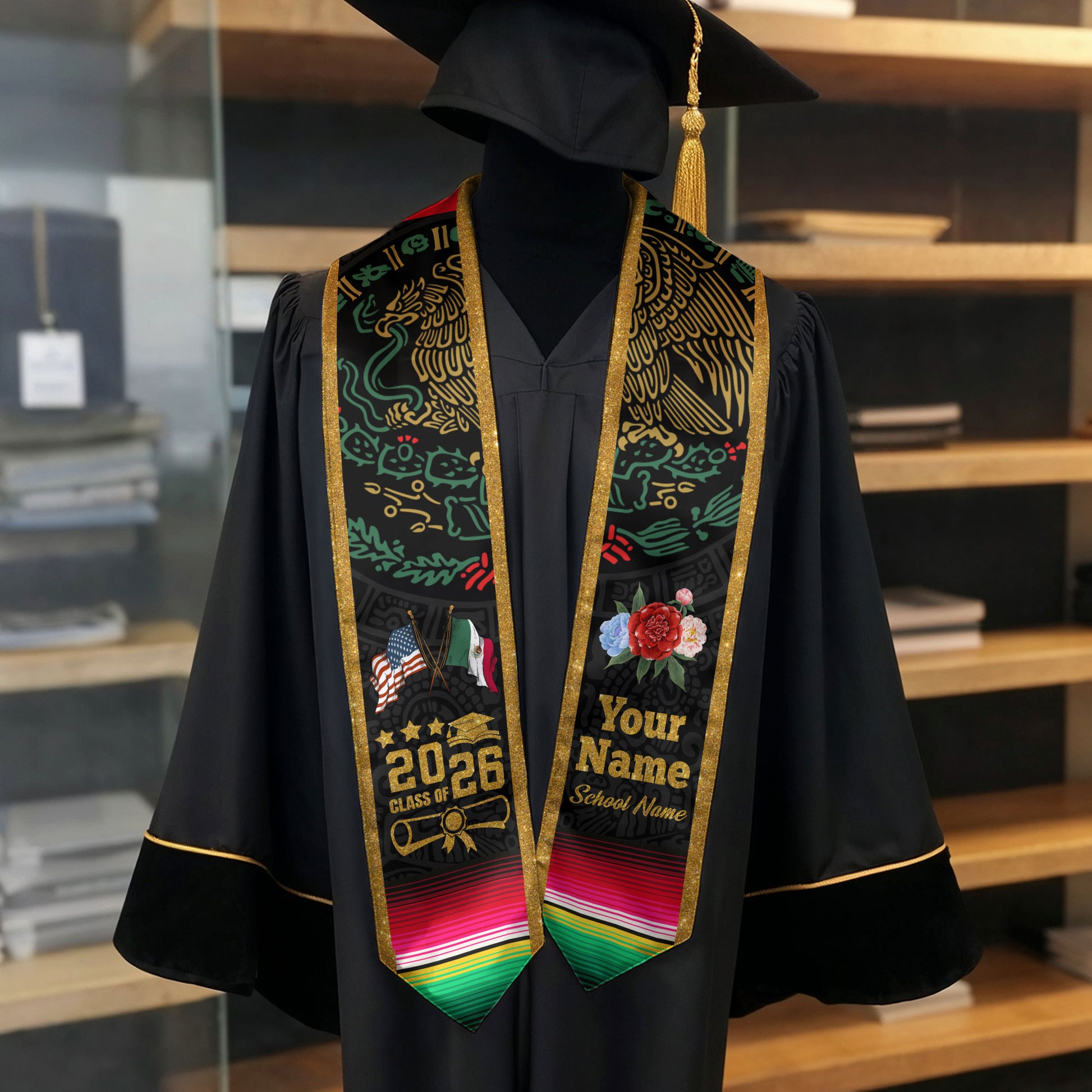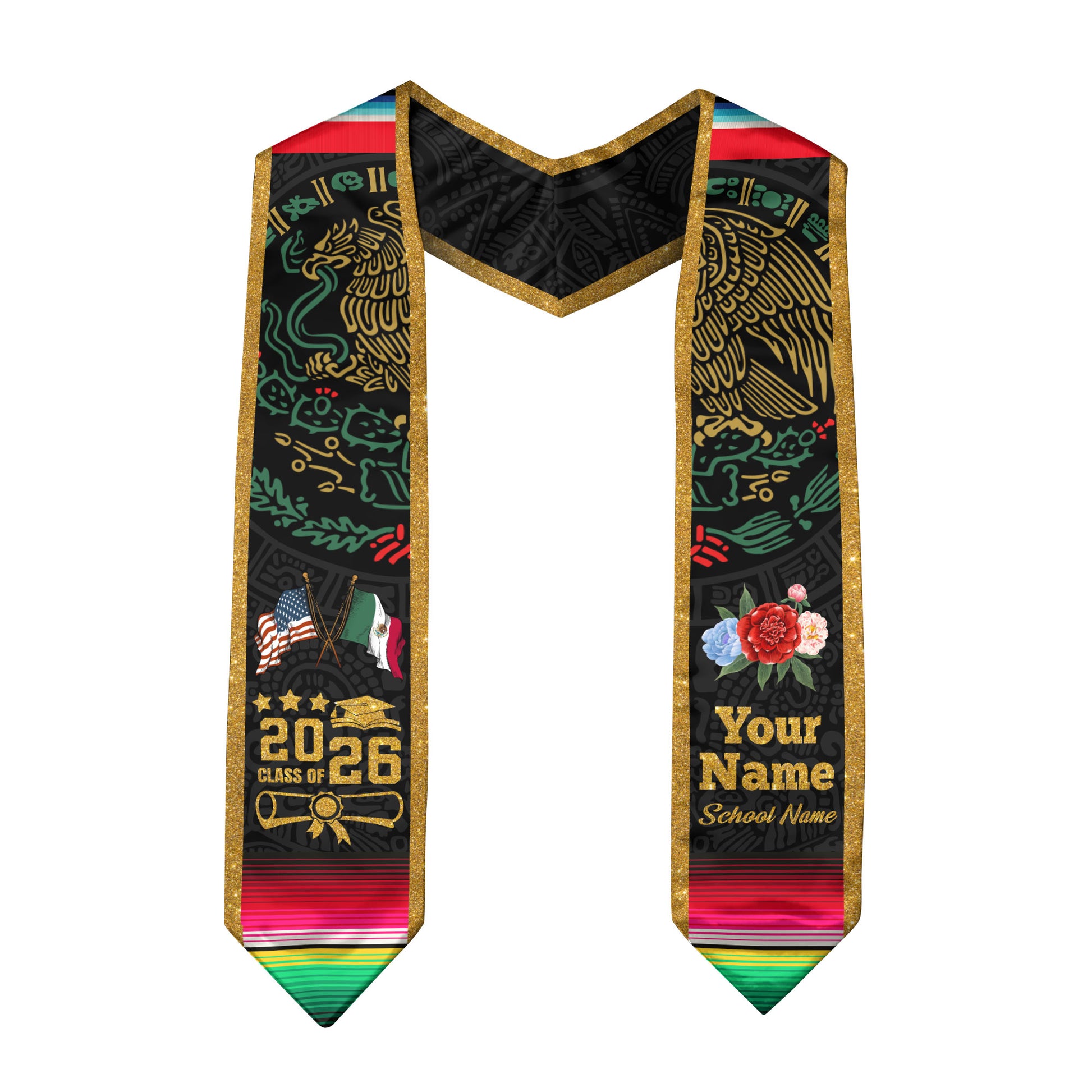 Mexican Graduation Stole 2026, Customized Sash, Mexican American Flag, Mexico Stole