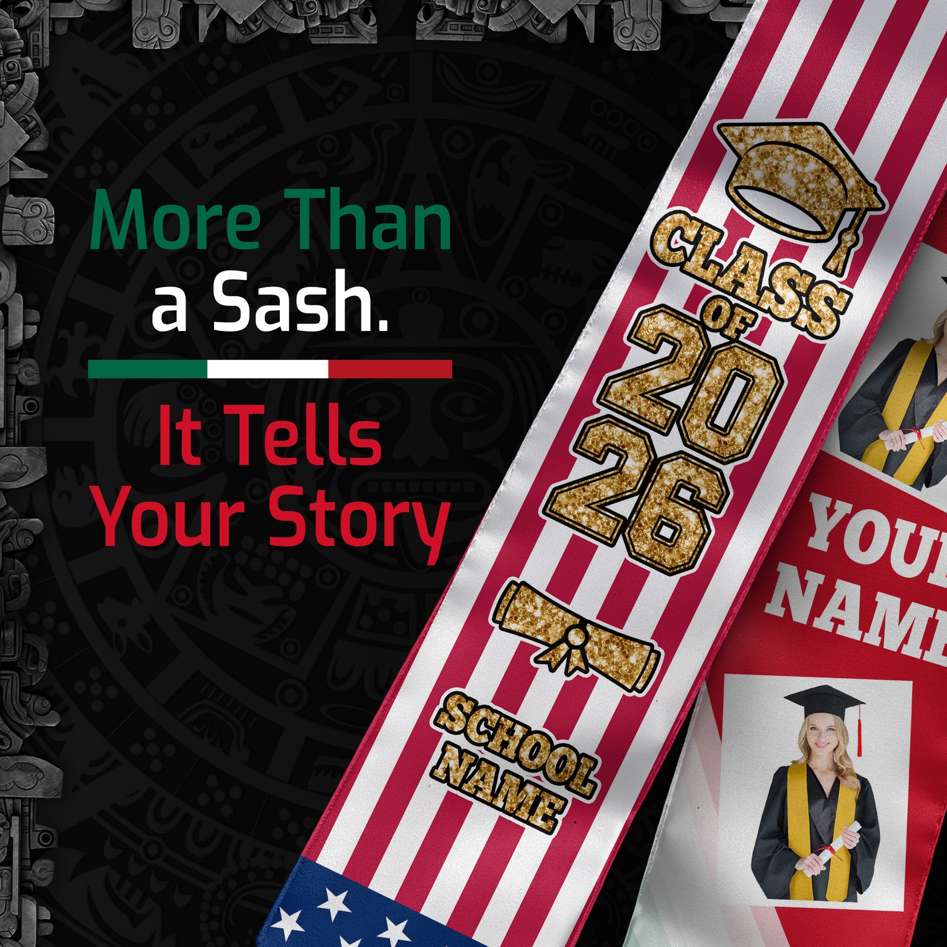 Custom Mexican Graduation Sash 2026 for Graduate, Personalized Mexico Stole with Photo