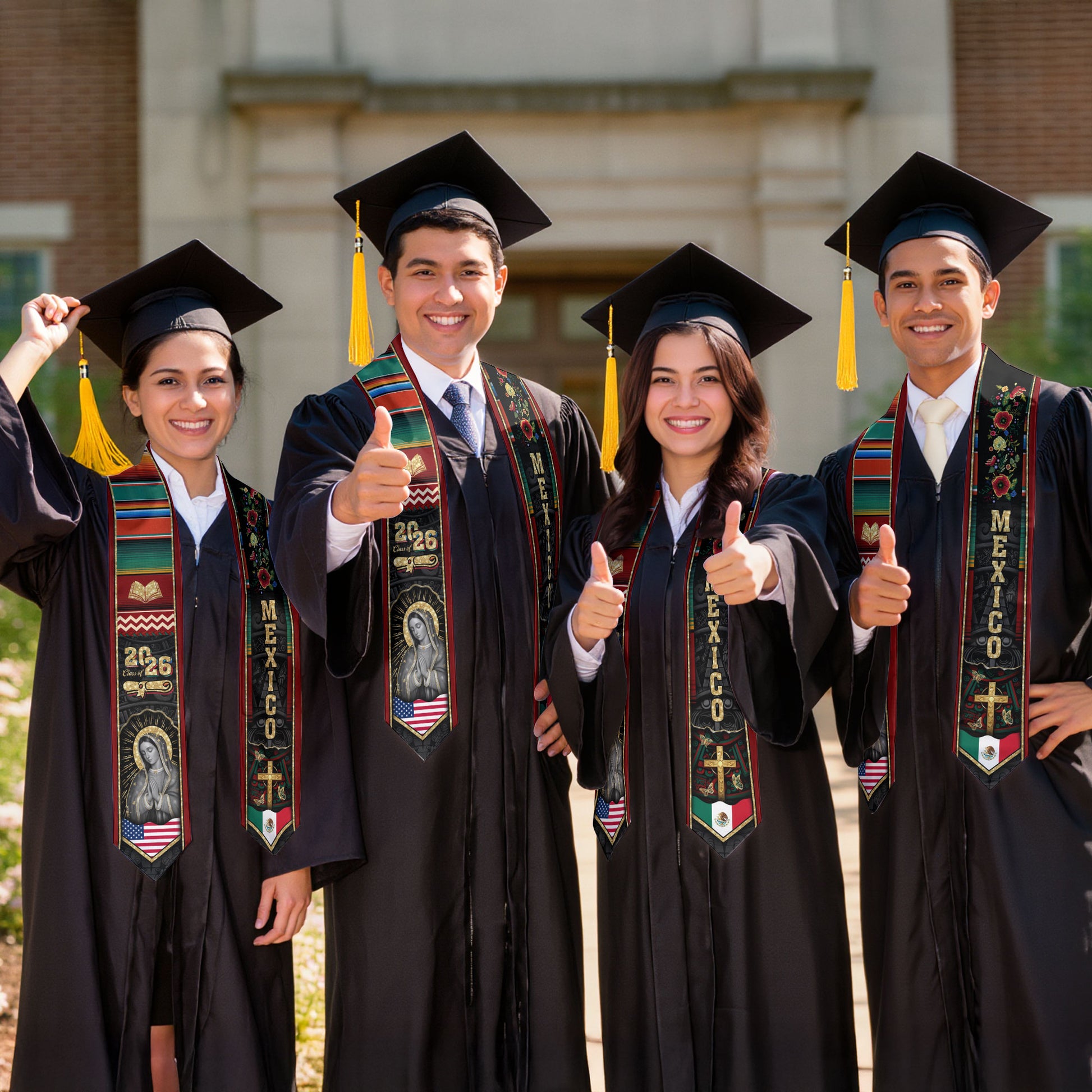 Mexican Graduation Stole Mexico Sash Aztec Virgin Mary Bible Cross 2026