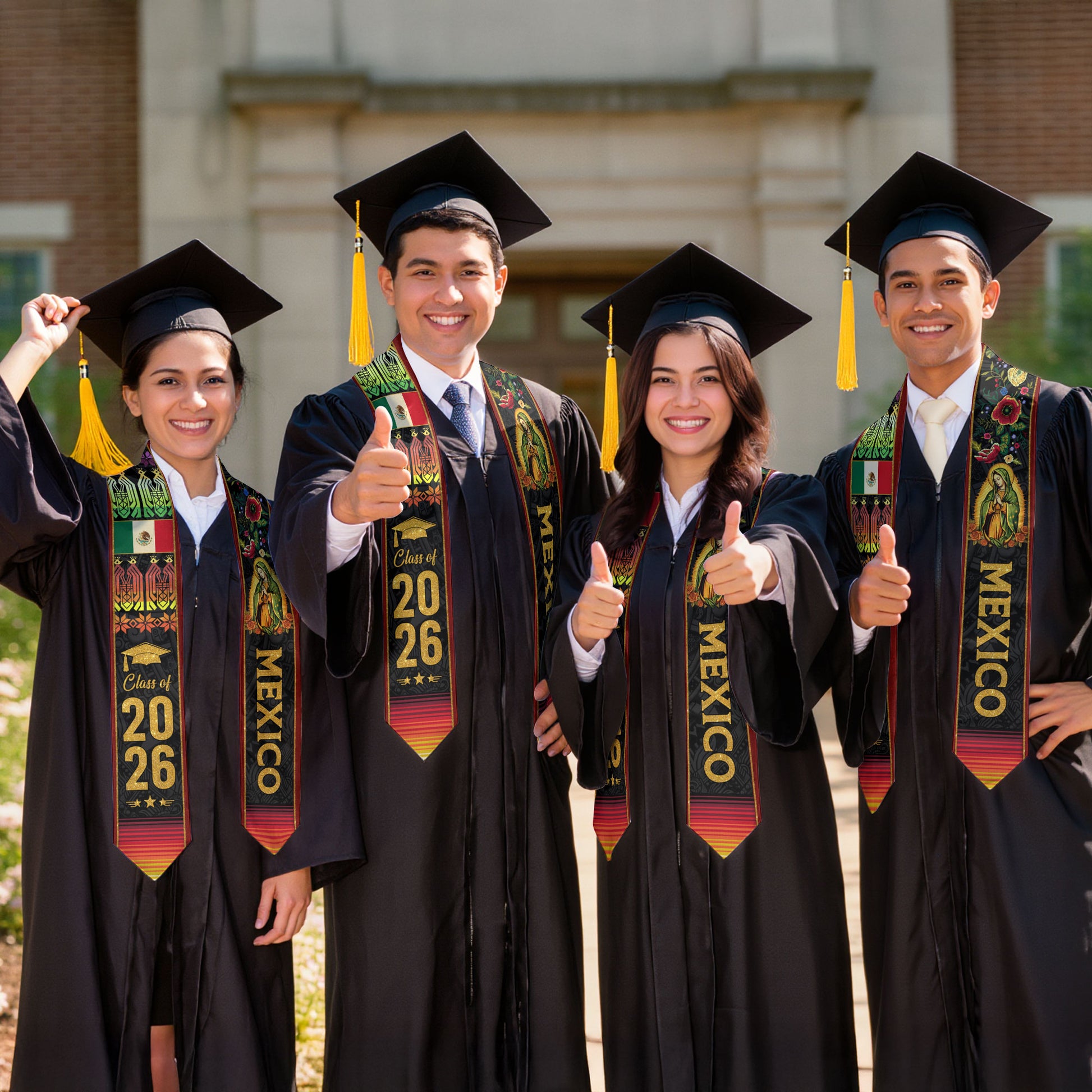 Mexican Graduation Stole Mexico Sash Aztec Virgin Mary Flowers Class 2026