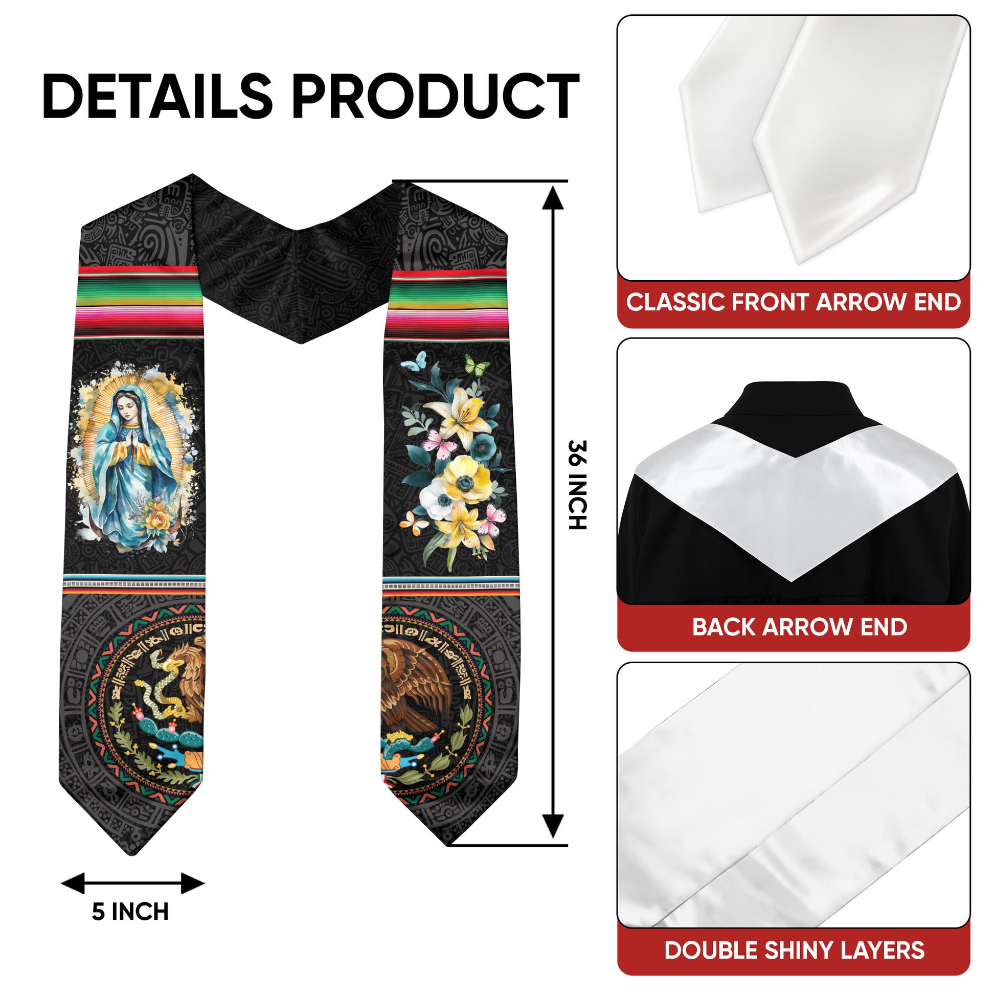 📏Standard Graduation Size:36" (91cm) long × 5" (12cm) wide — fits comfortably over all graduation gowns.