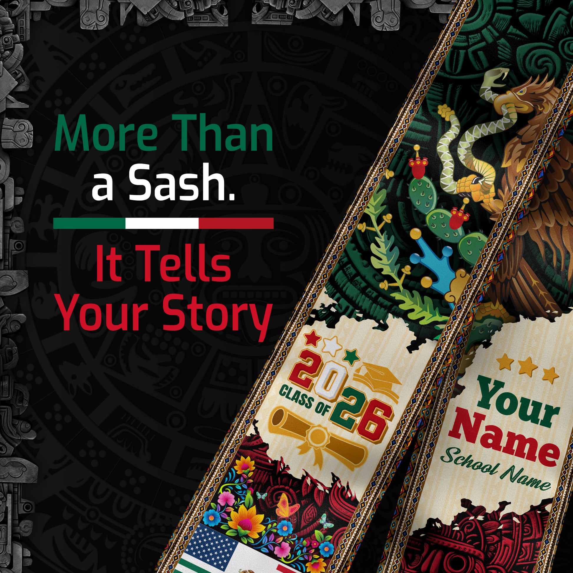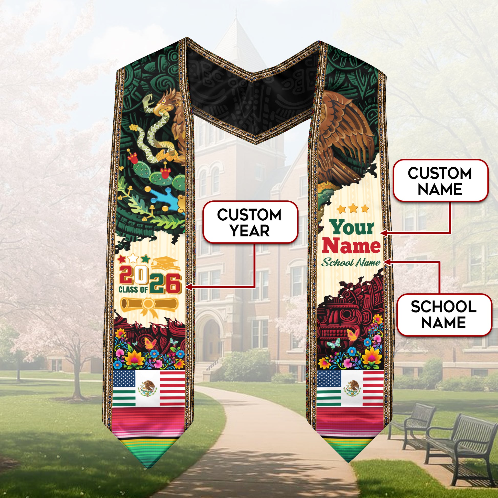 Personalized Mexican Graduate Sash 2026, Custom Mexico Stole for Graduation