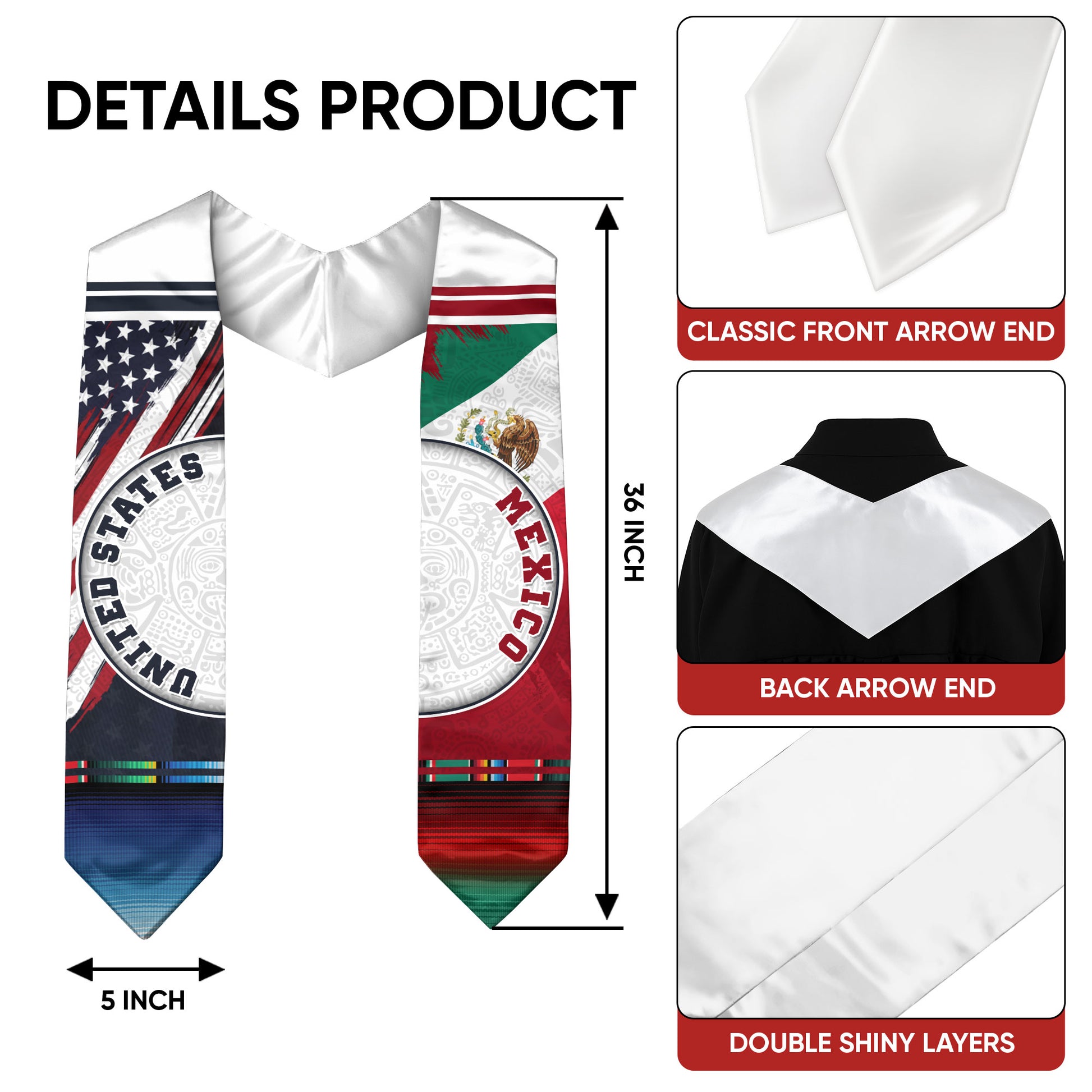 📏Standard Graduation Size:36" (91cm) long × 5" (12cm) wide — fits comfortably over all graduation gowns.