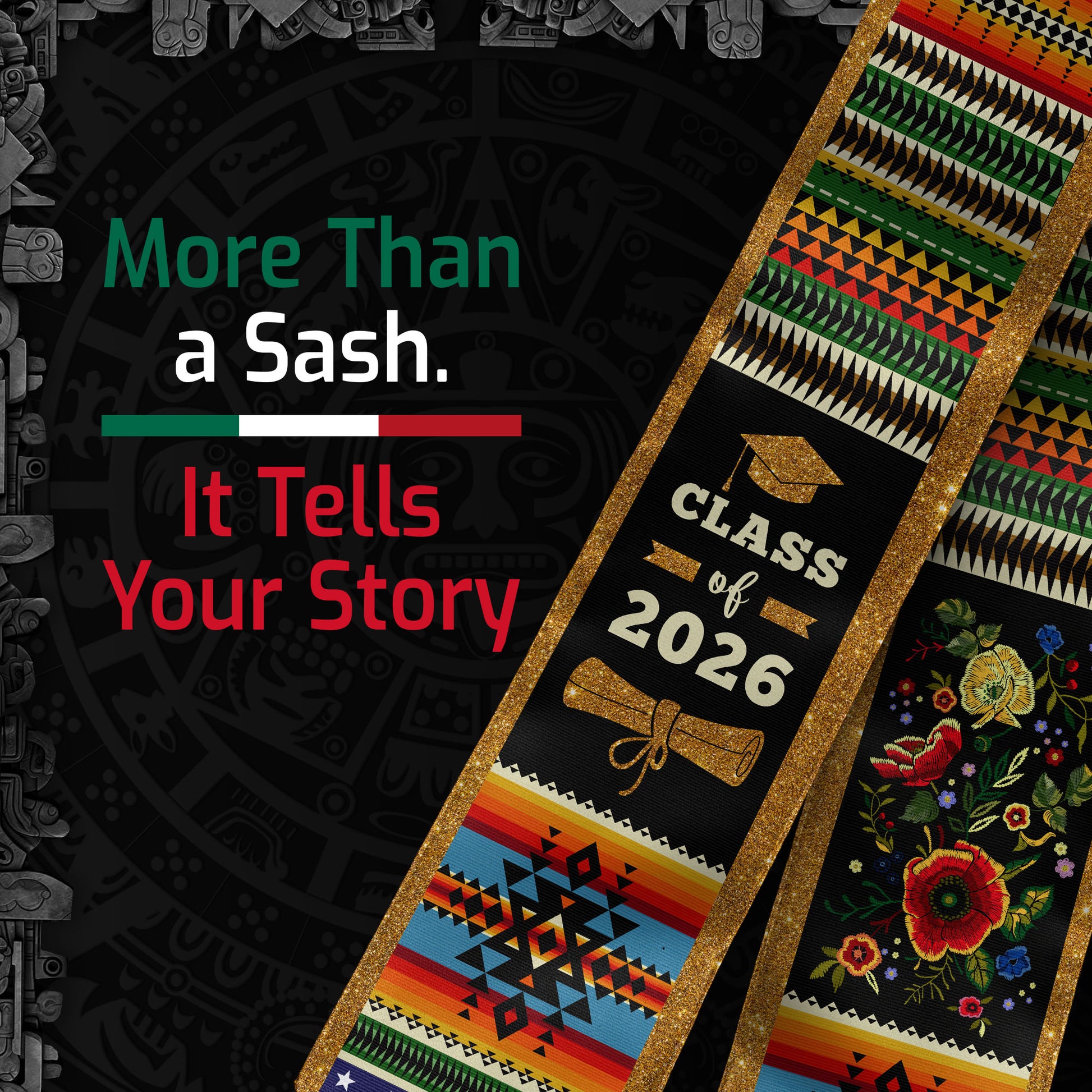 Mexico Sash 2026 Graduation, Mexican Stole with Mexico Flag Design, Senior Class 2026