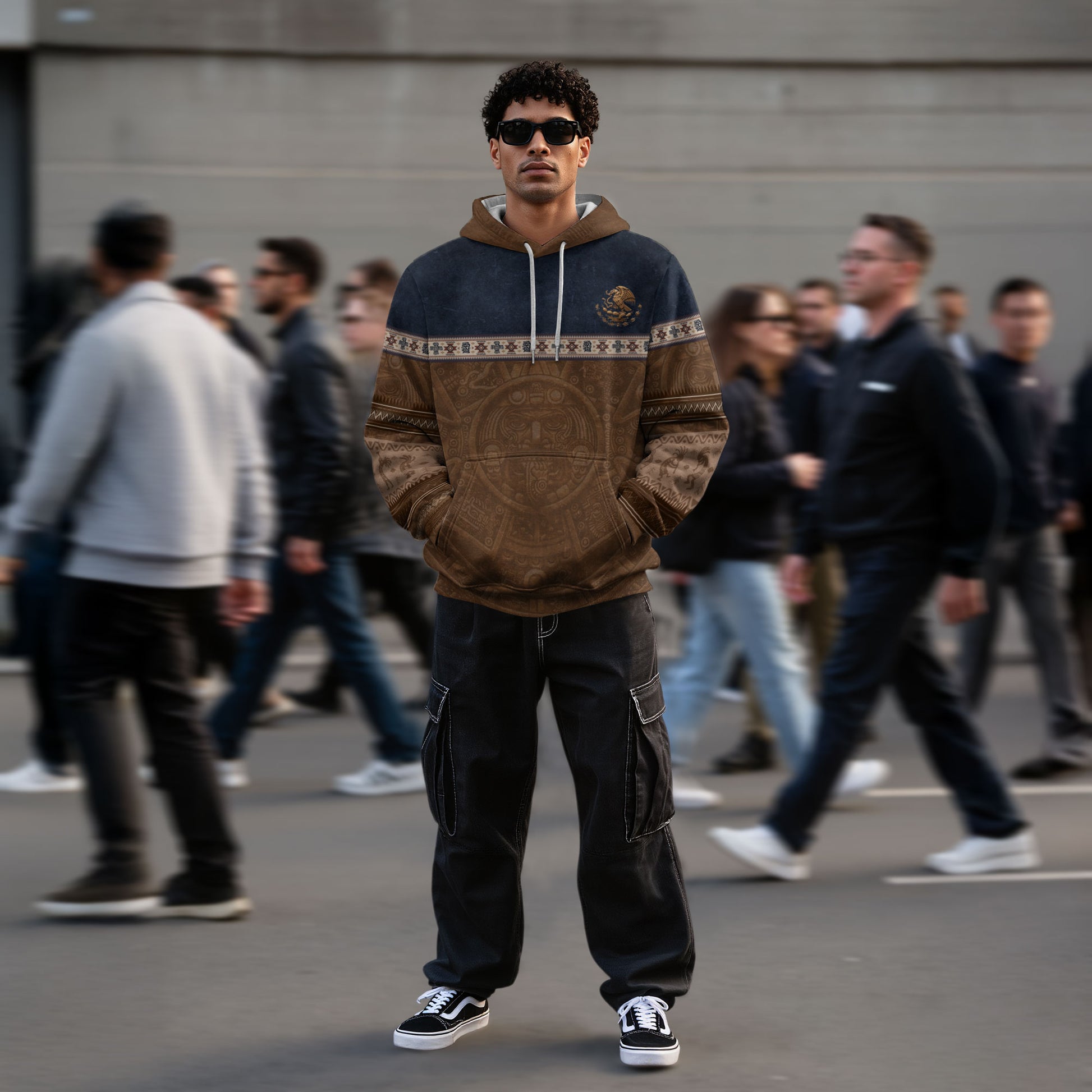 This men’s hoodie features a bold Aztec tribal heritage symbol inspired by ancient Mexican culture, showcasing strength, tradition, and artistic identity. Designed for everyday comfort and casual wear, it’s perfect for those who appreciate indigenous art, cultural pride, and timeless graphic style.
