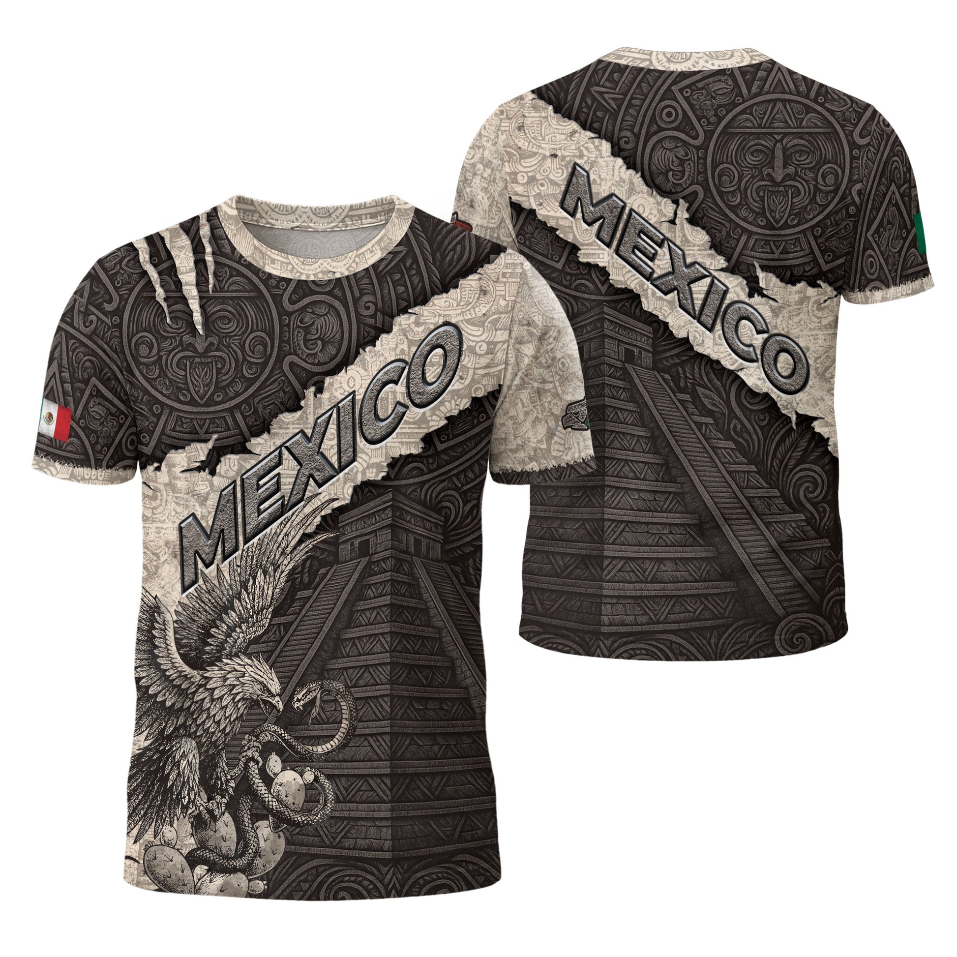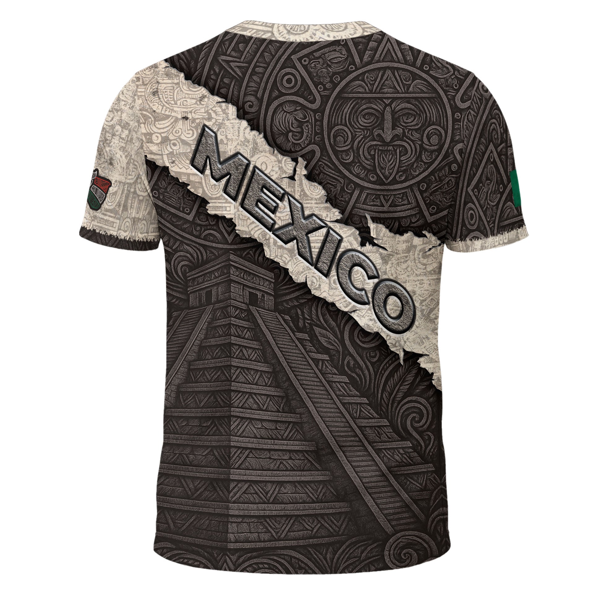 Stone-textured Mexico heritage shirt featuring Aztec pyramid and eagle emblem — symbol of history, pride, and power.