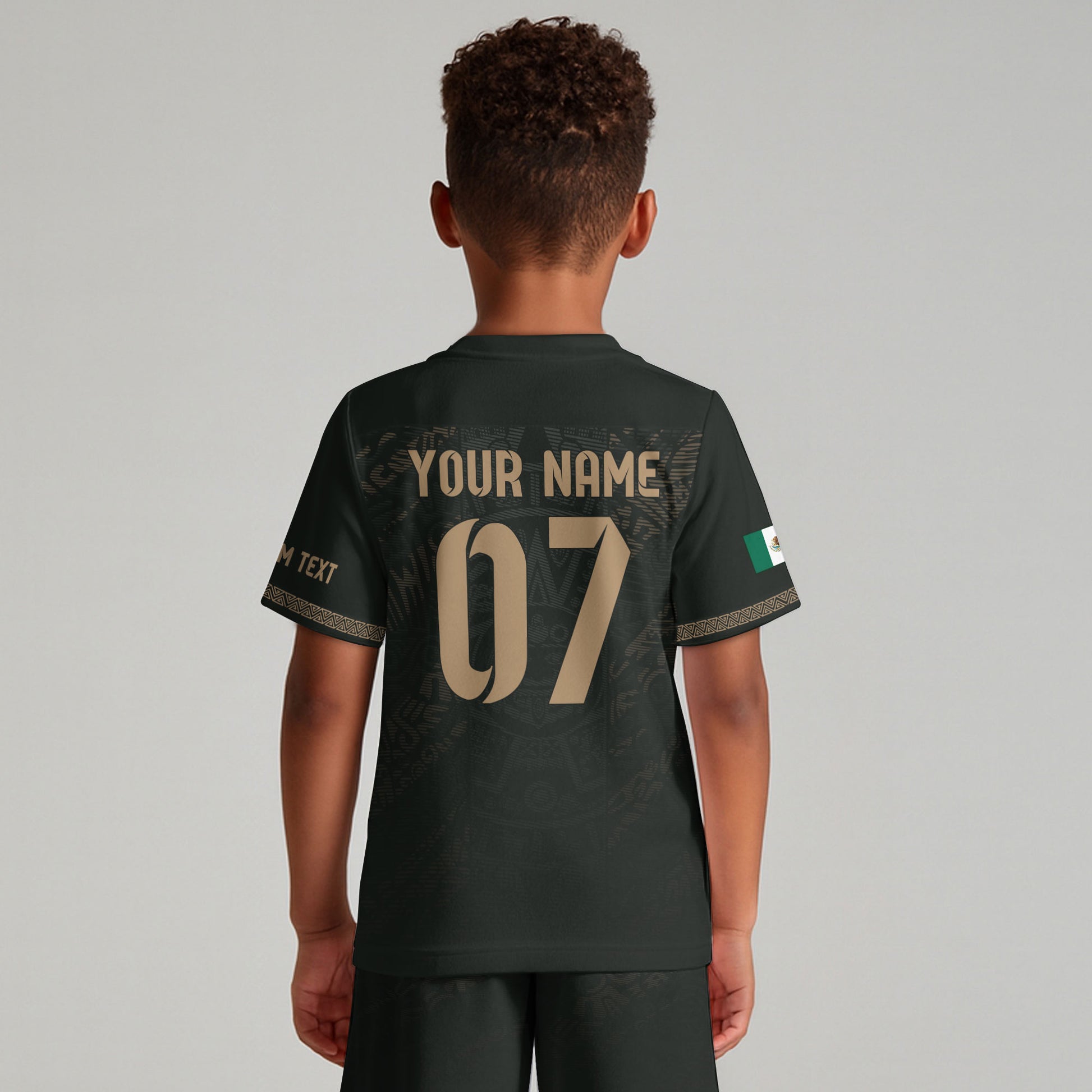 Let your young player shine with this custom Mexico soccer jersey featuring Aztec designs and the powerful eagle — made for pride, culture, and future champions.
