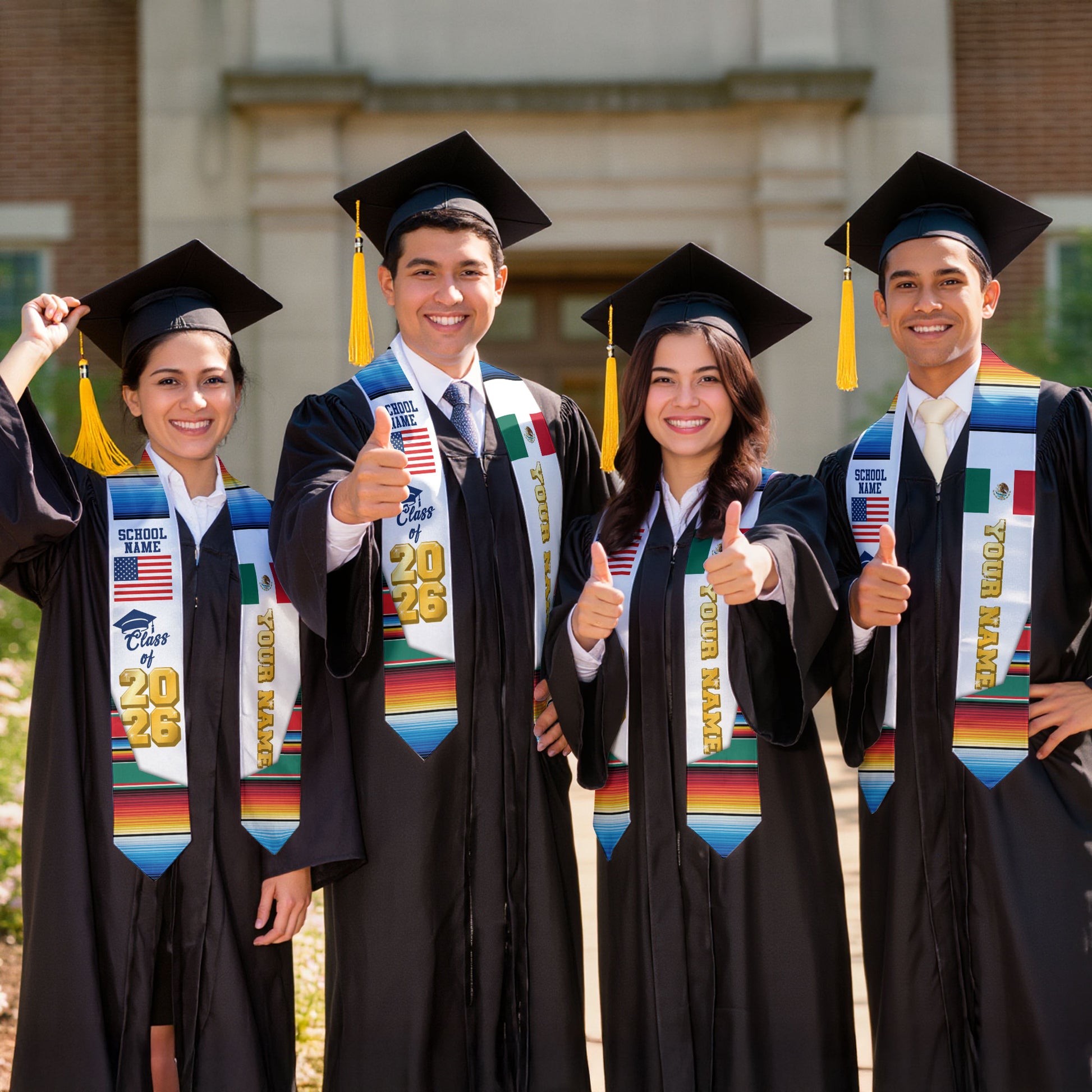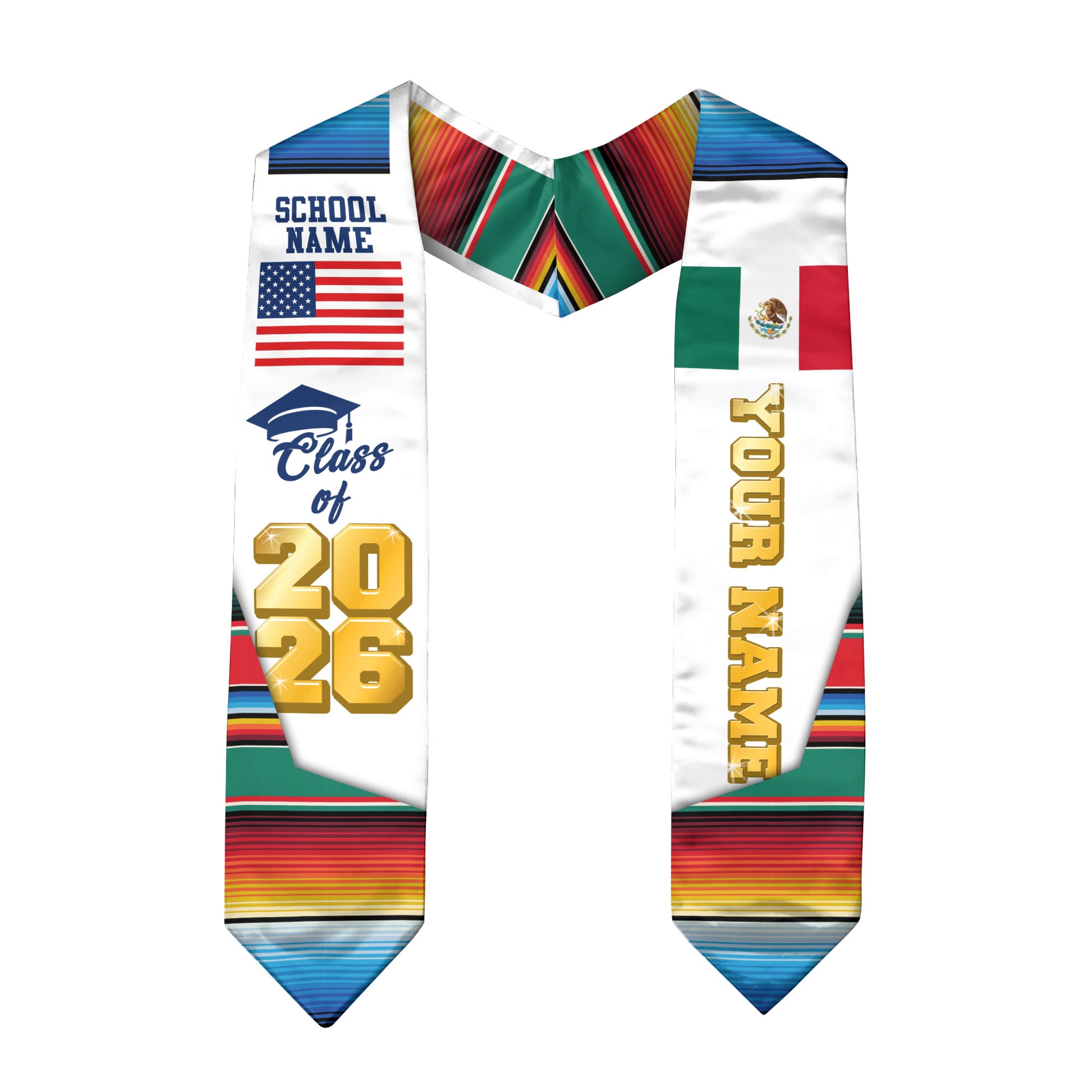 Custom Mexican Graduation Stole 2026 Aztec Pattern USA Mexico Flag Sash