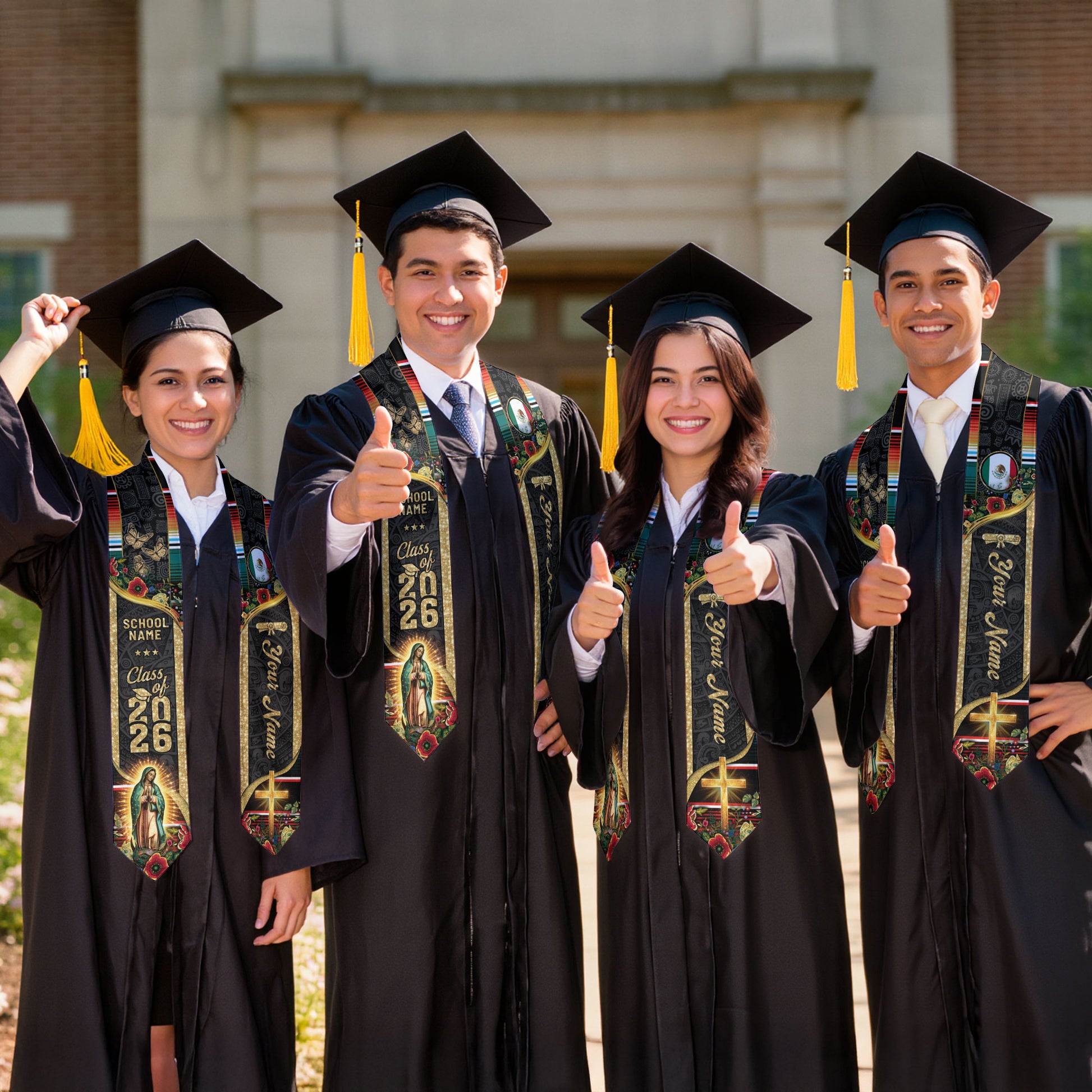 Custom Mexican Graduation Stole 2026 Mexico Sash Butterfly Virgin Mary Aztec Patterns
