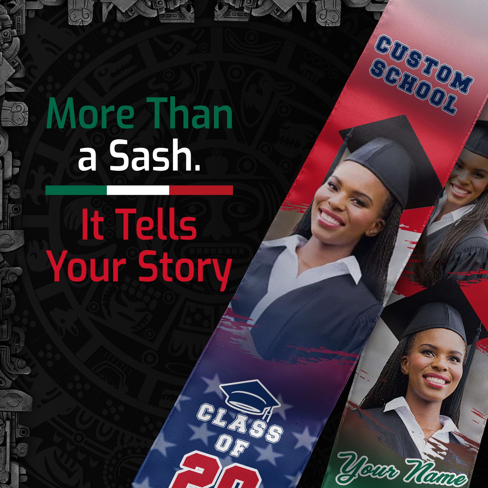 Custom Mexican Graduation Stole 2026 Mexico USA Flag Photo Graduation Sash