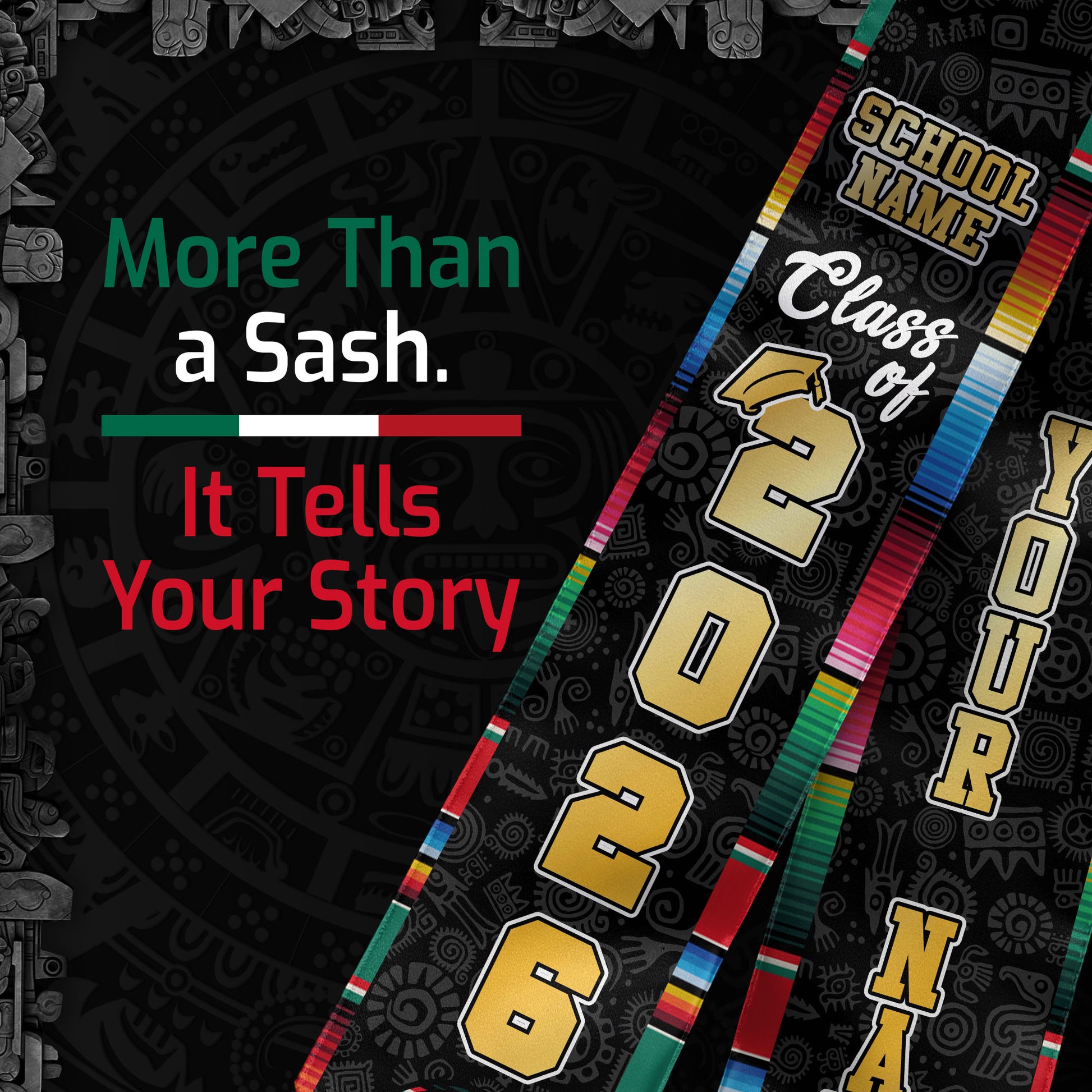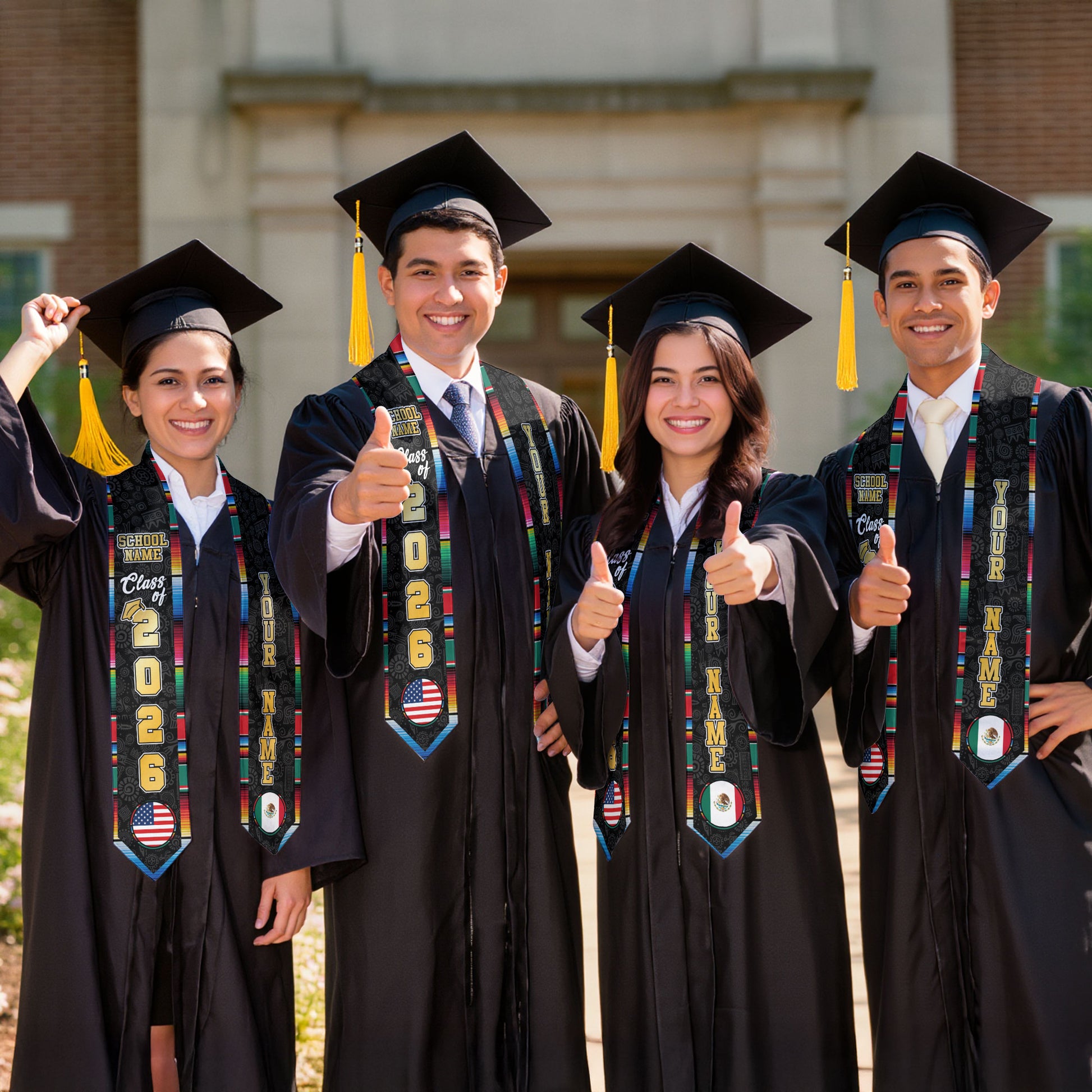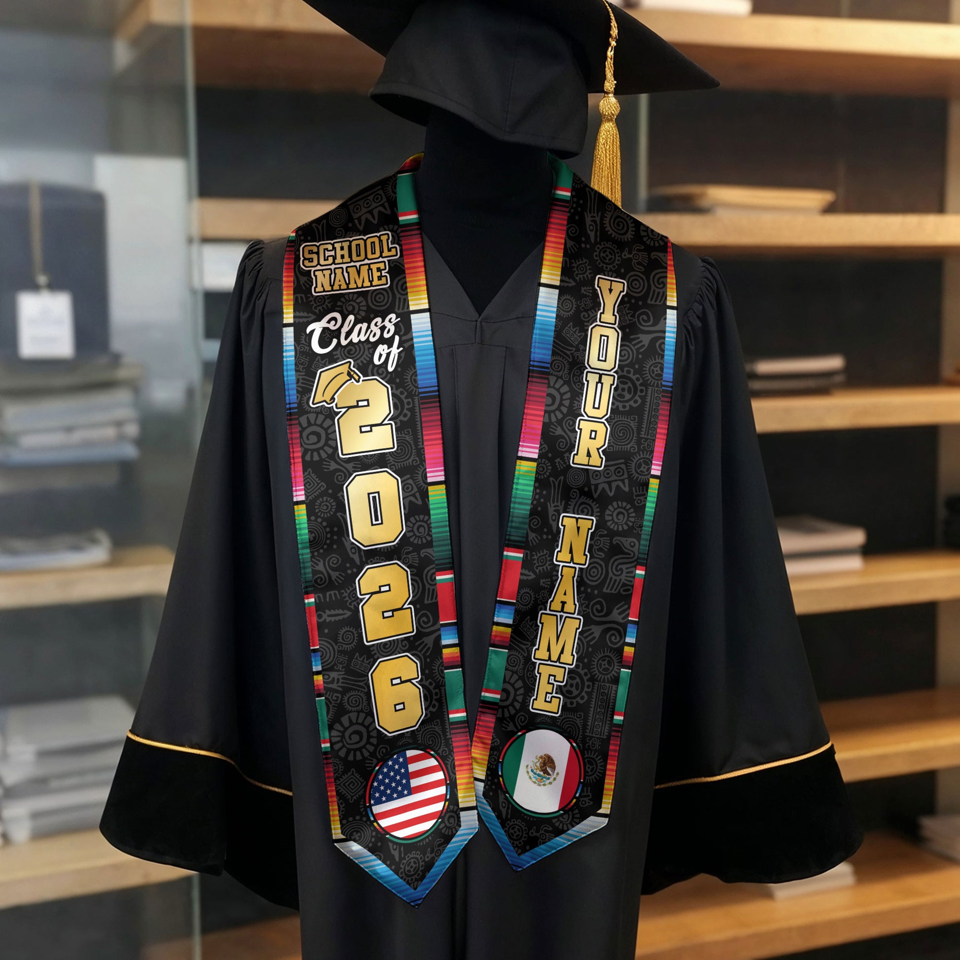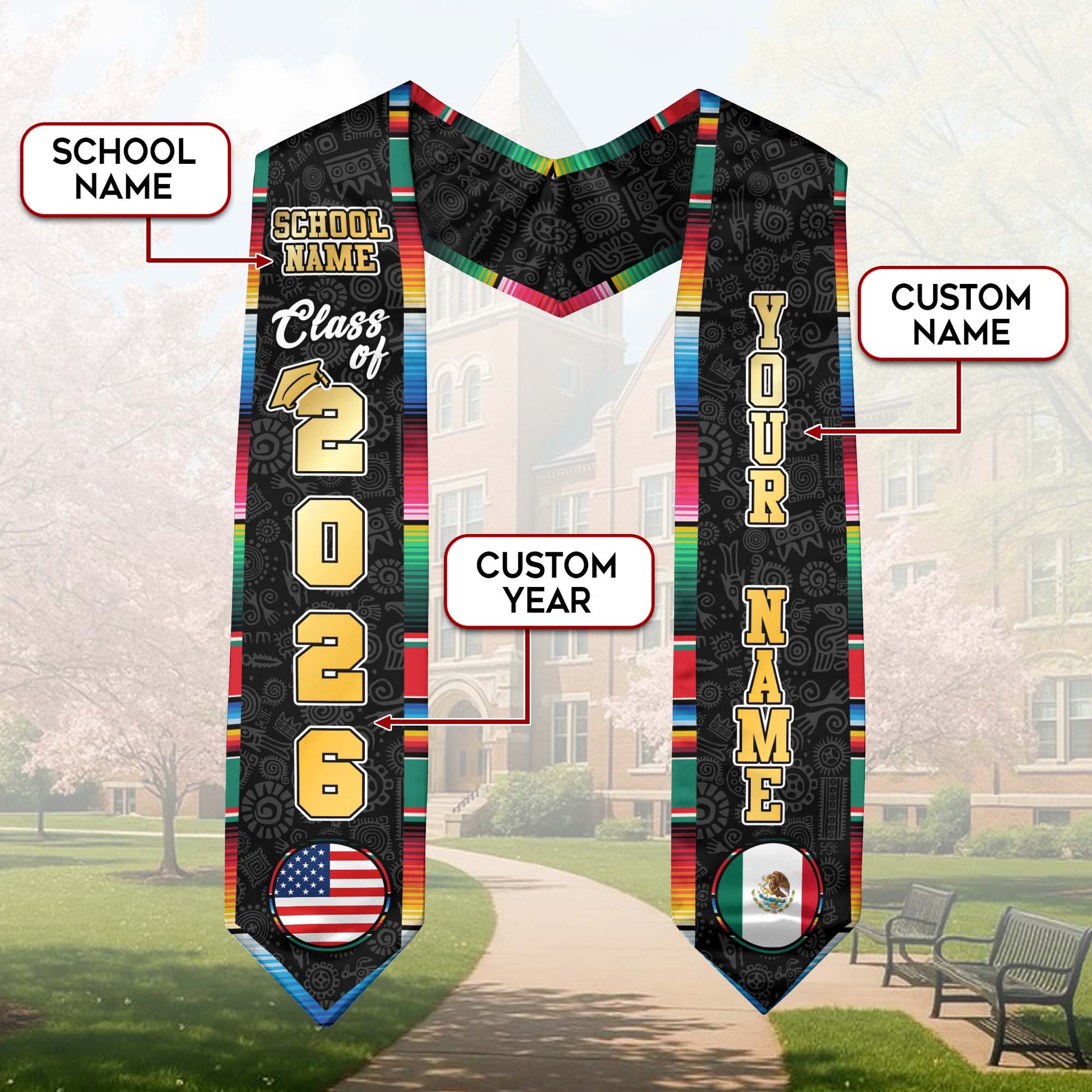 Custom Mexican Graduation Stole 2026 USA Mexico Flag Serape Eagle Emblem