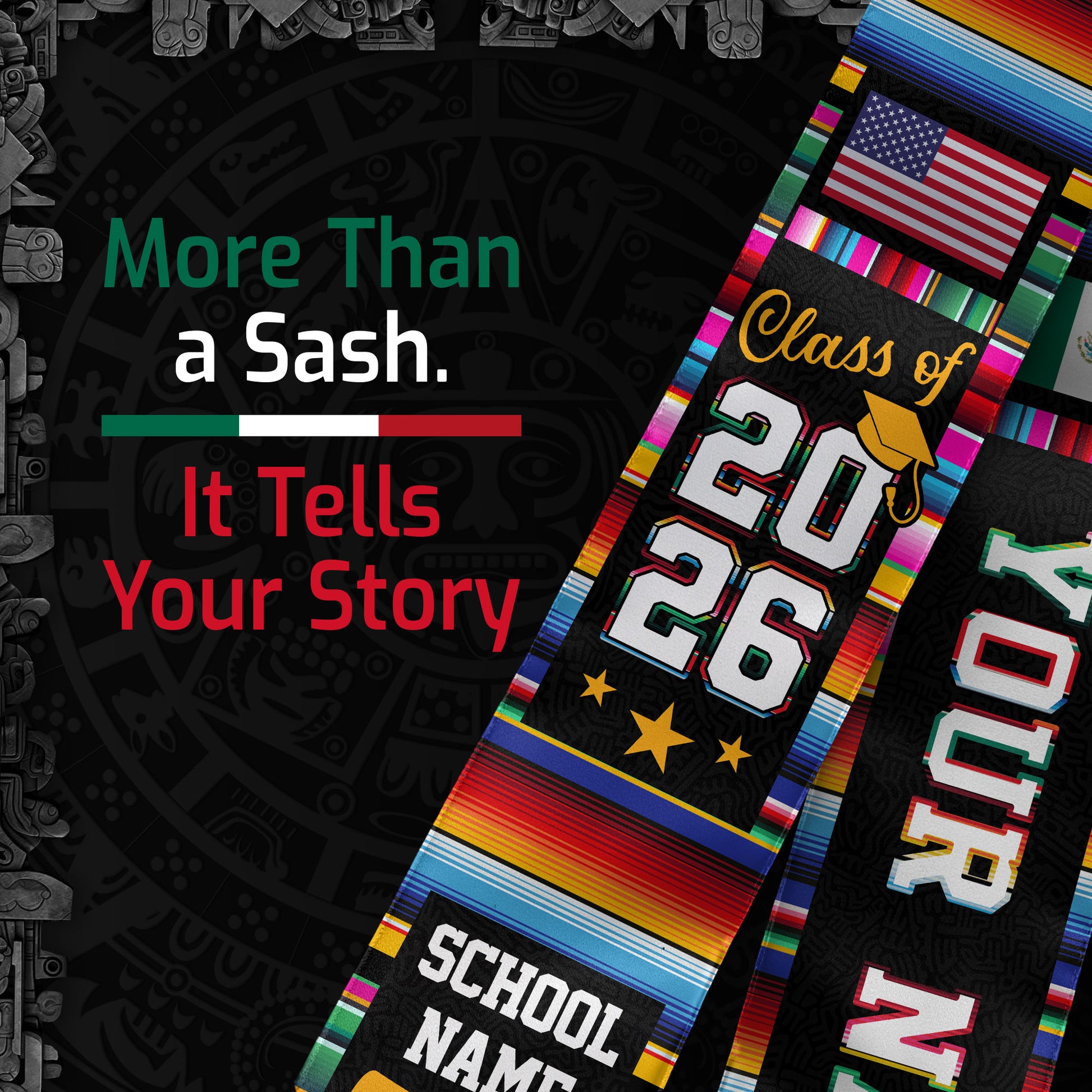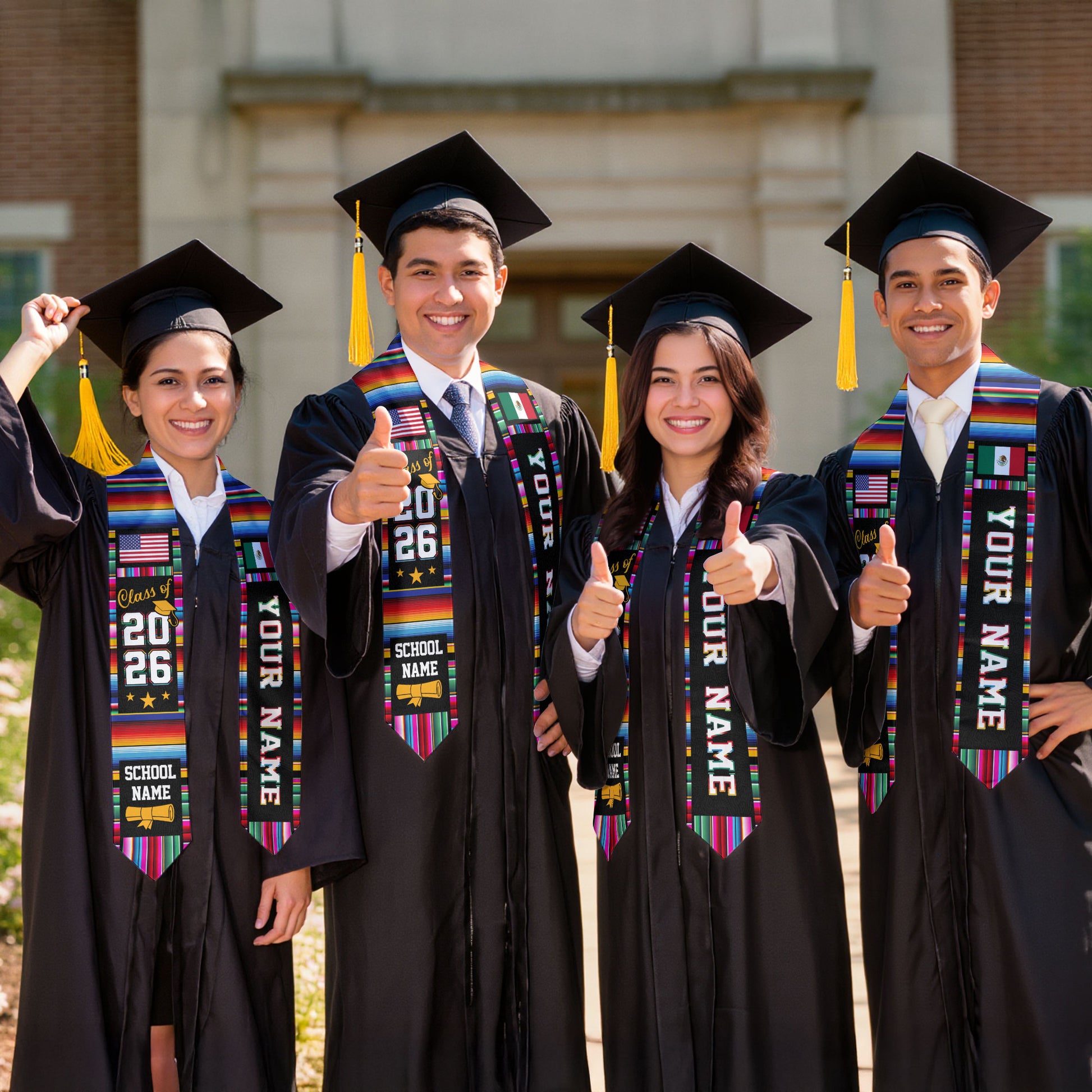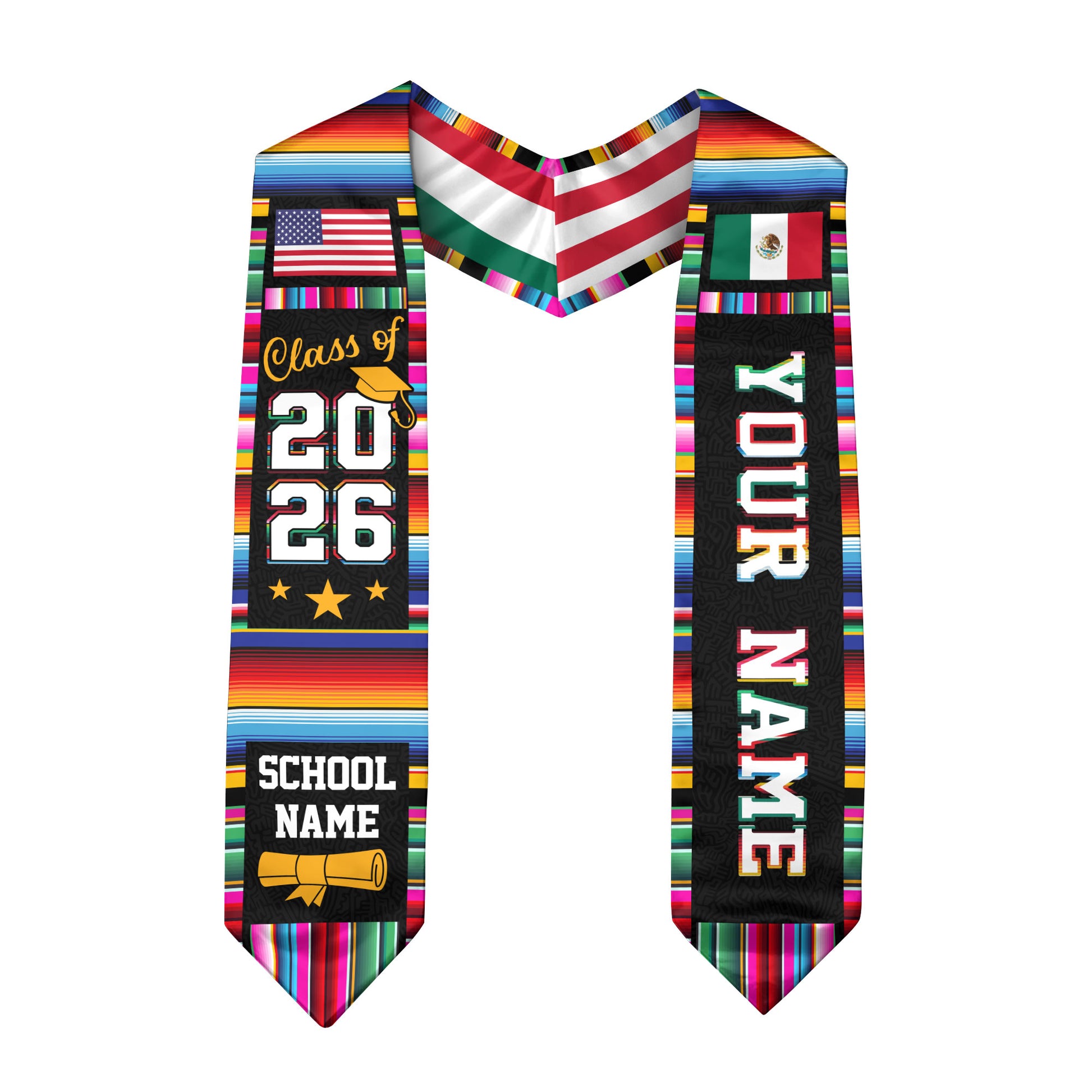 Custom Mexican Graduation Stole Mexico USA Flag Serape Class 2026 Personalized Name