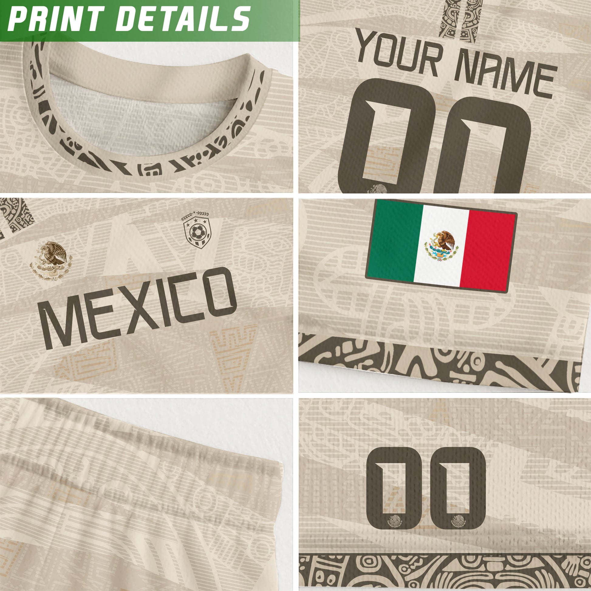 Custom Mexico Beige Aztec Kids Soccer Jersey