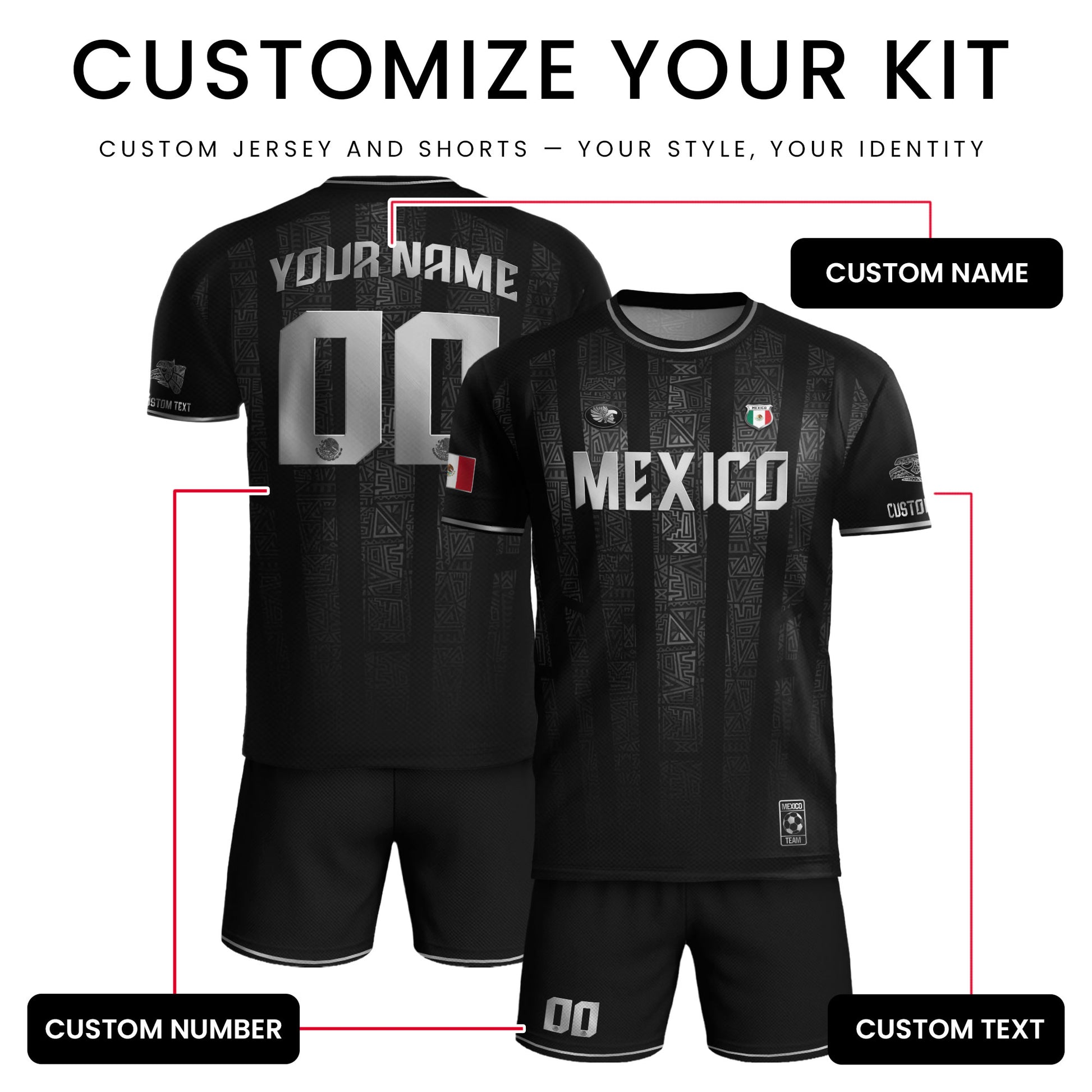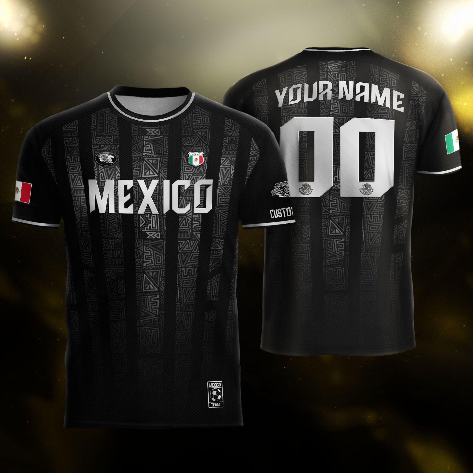 Custom Mexico Black Silver Aztec Pattern Soccer Jersey