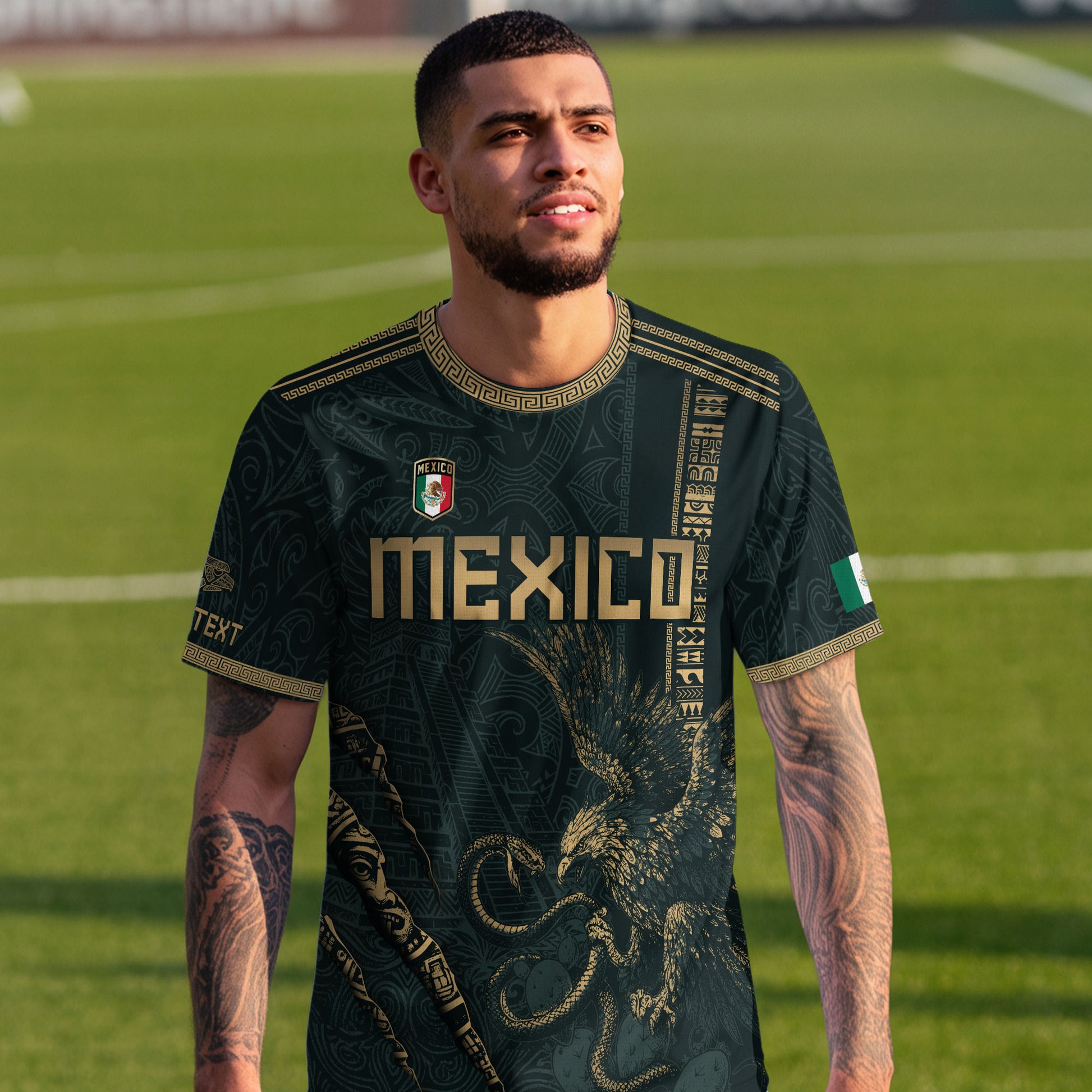 Custom Mexico Green Gold Eagle Claw Aztec Warrior Heritage Soccer Jersey