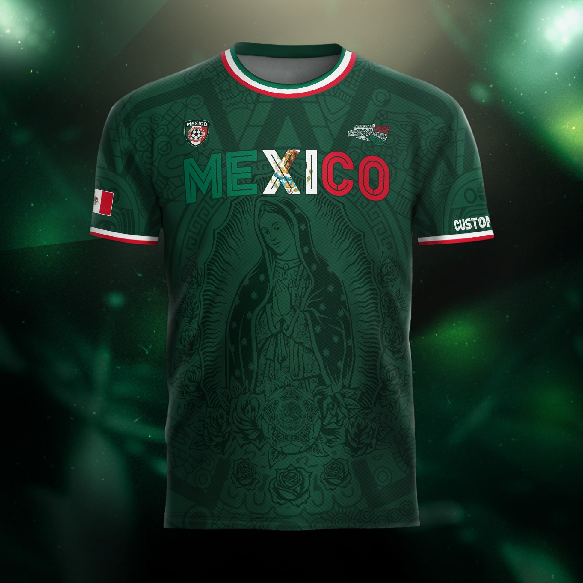 Custom Mexico Green Virgin of Guadalupe Soccer Jersey