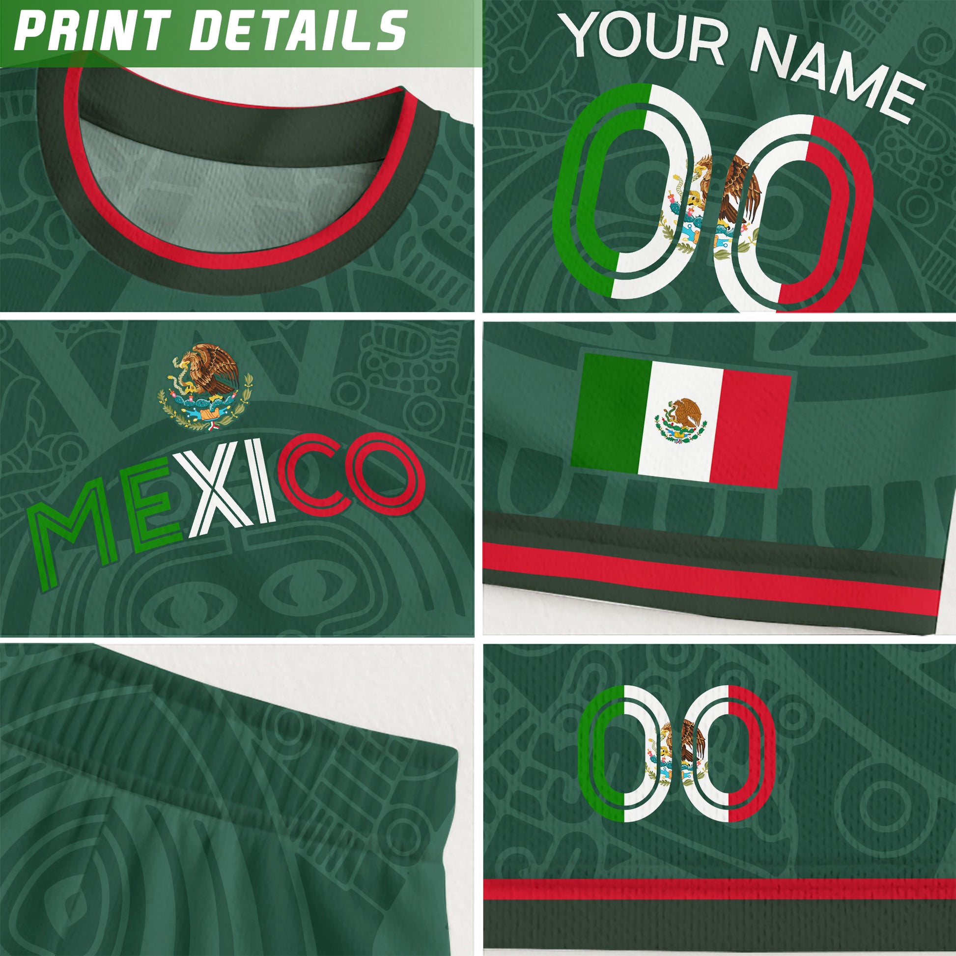 Custom Mexico Kids Soccer Jersey Green Heritage Flag Aztec Pattern Design