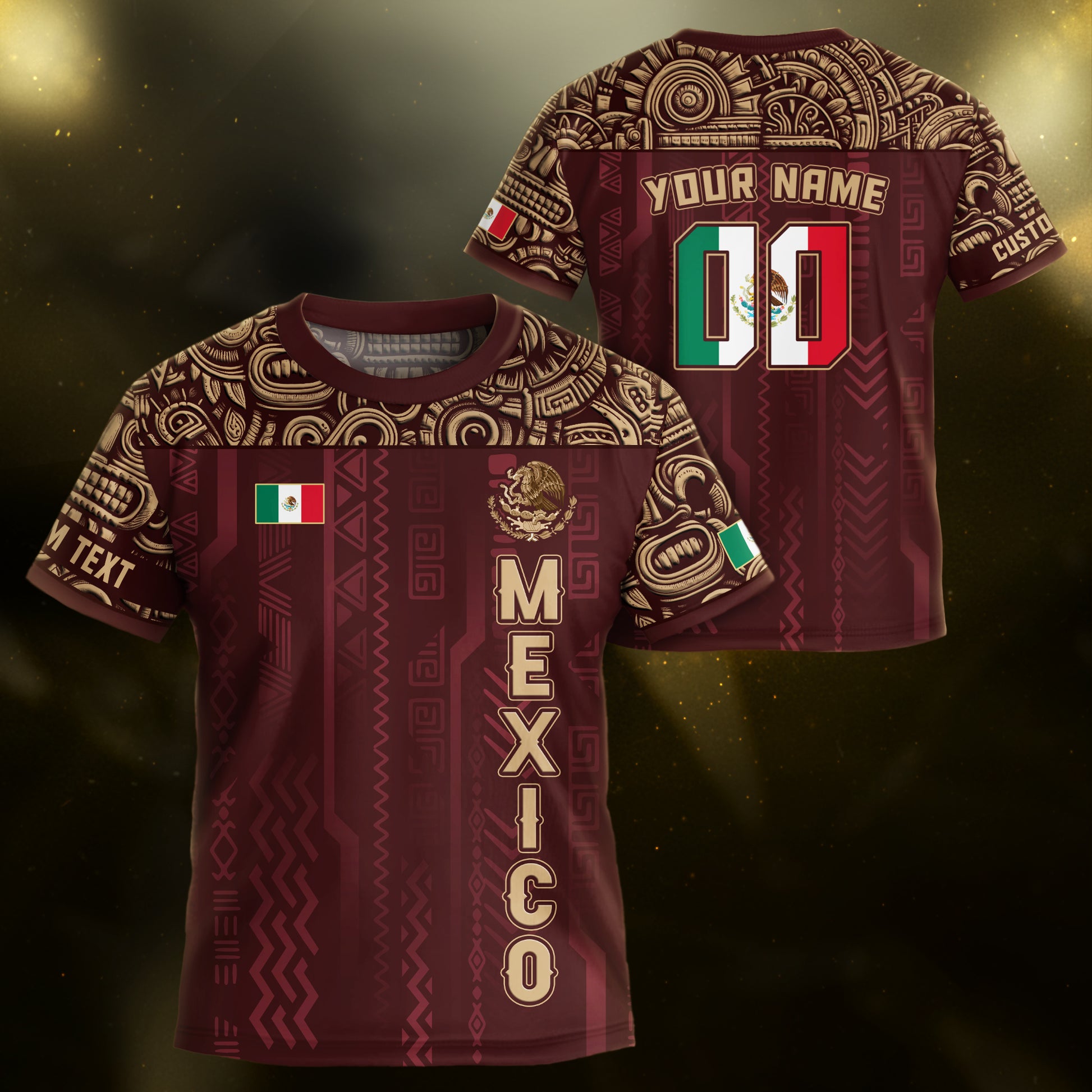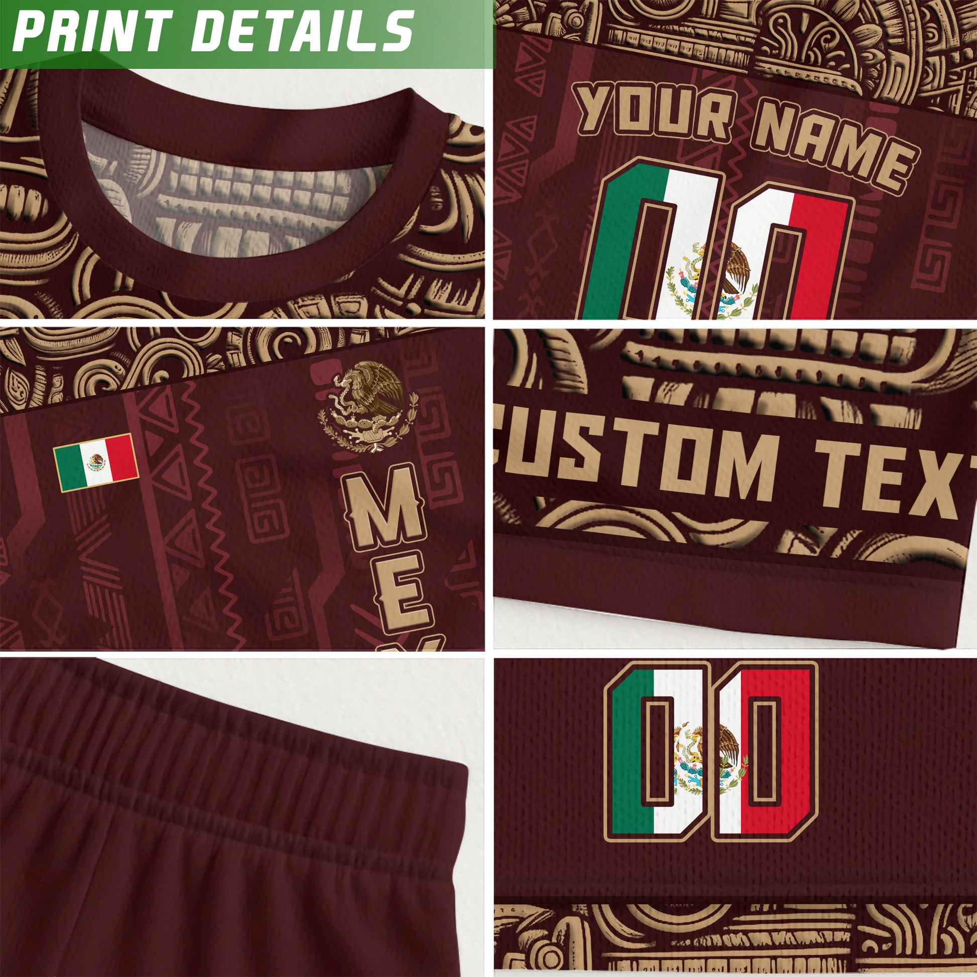 Give your child a bold look with this custom Mexico kids soccer jersey. Featuring Aztec warrior patterns in deep red with gold accents, it proudly displays Mexico’s heritage. Personalize it with their name and number for a one-of-a-kind jersey.