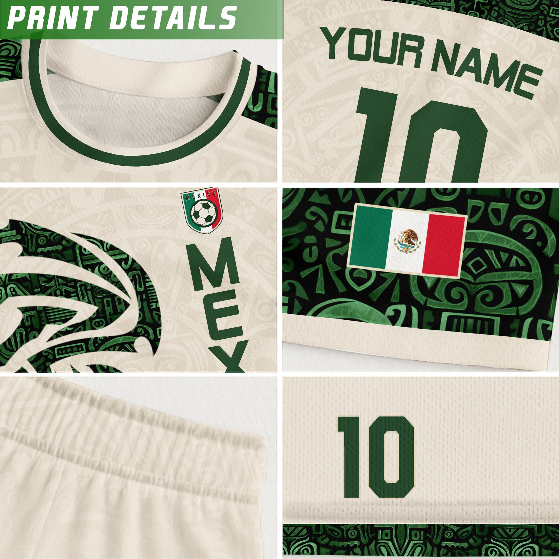 Custom Mexico Soccer Jersey Beige Green Aztec Design
