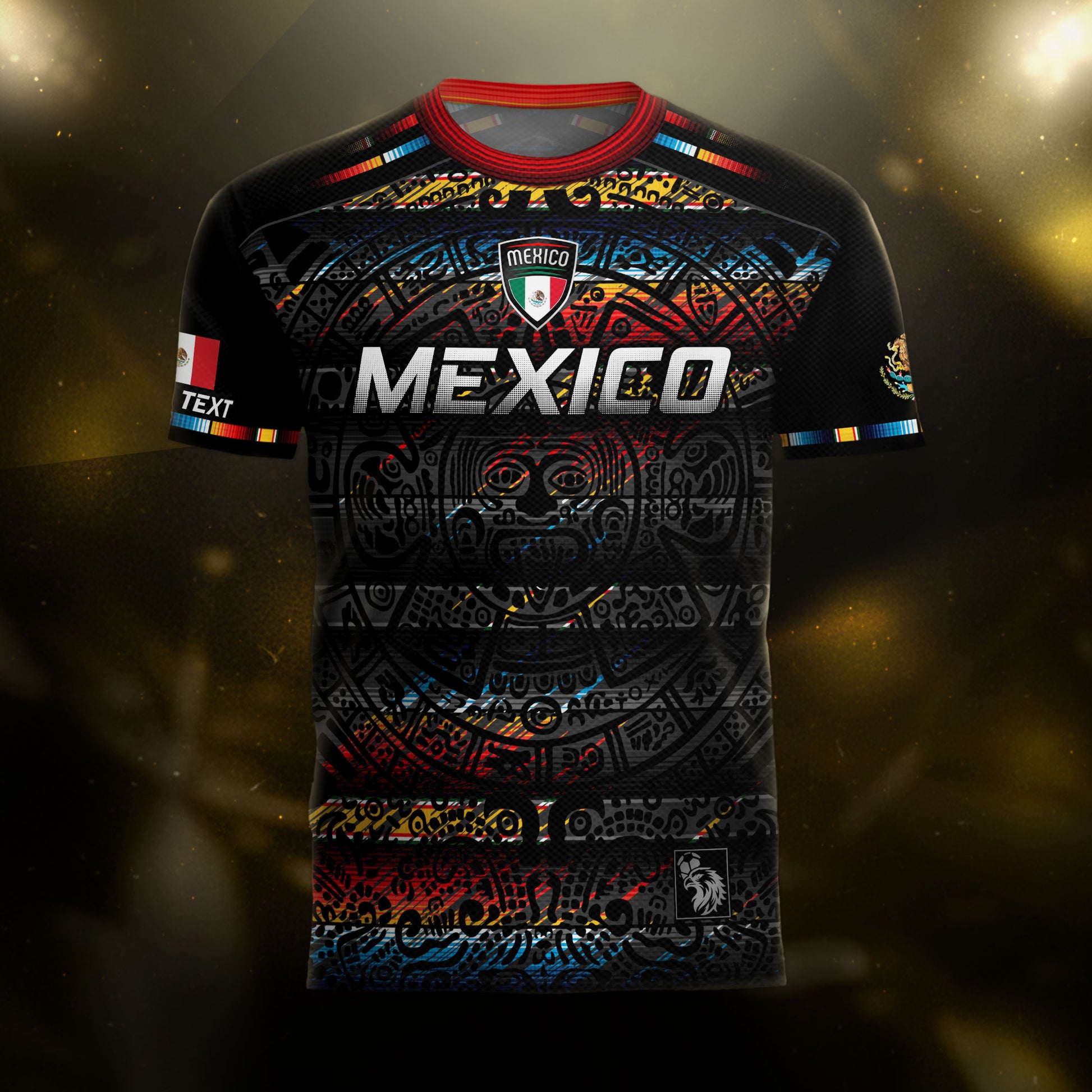 Custom Mexico Soccer Jersey Black Modern Aztec Calendar Design