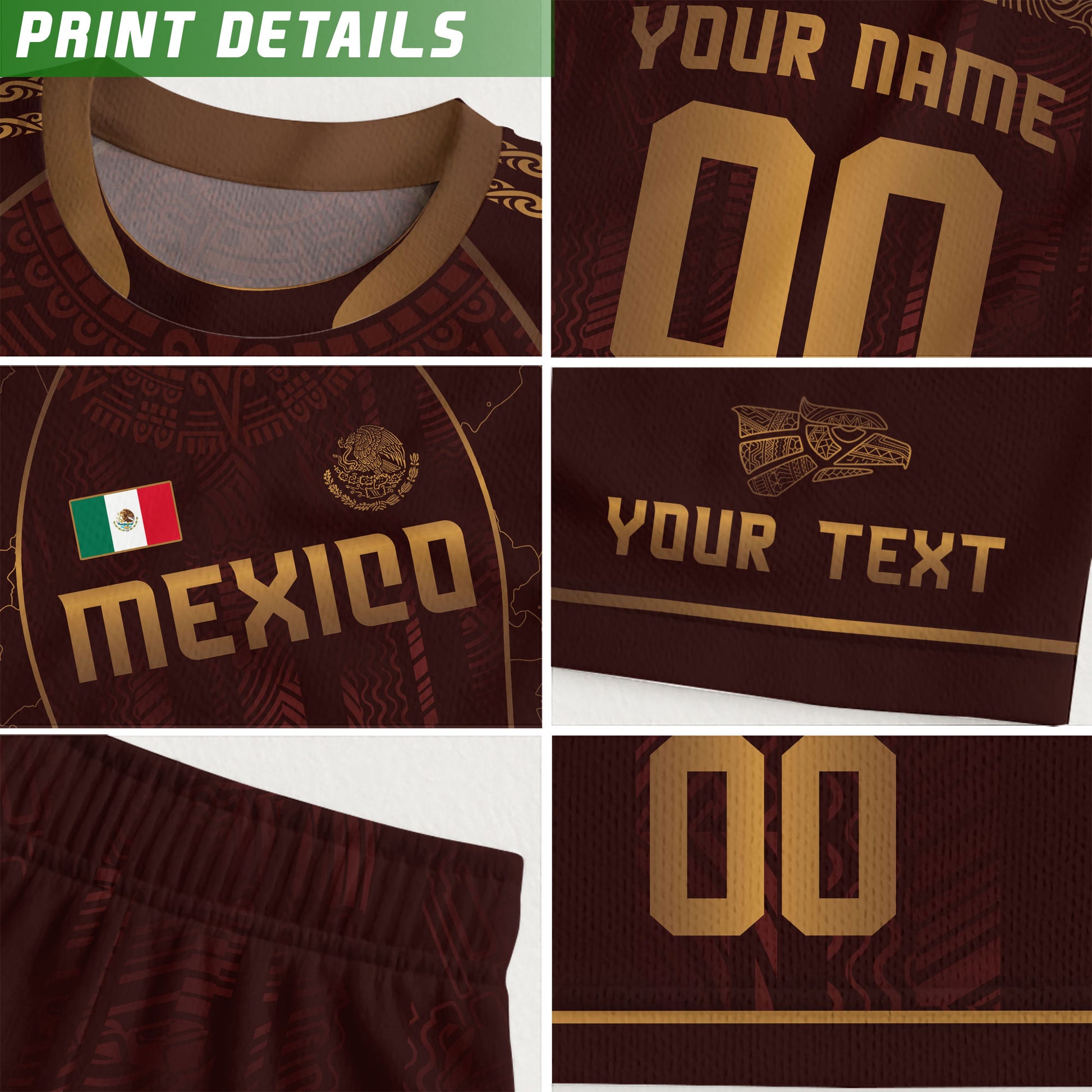 Custom Mexico Soccer Jersey Burgundy Gold Aztec Pattern Heritage Design