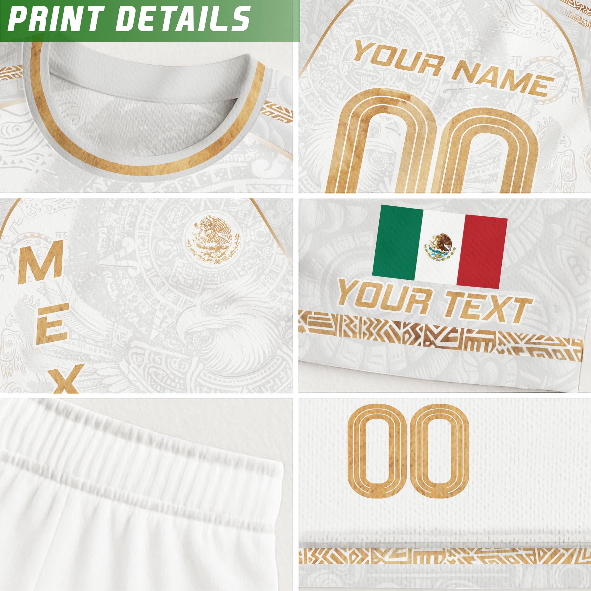 Custom Mexico Soccer Jersey White Gold Heritage Aztec Eagle Design