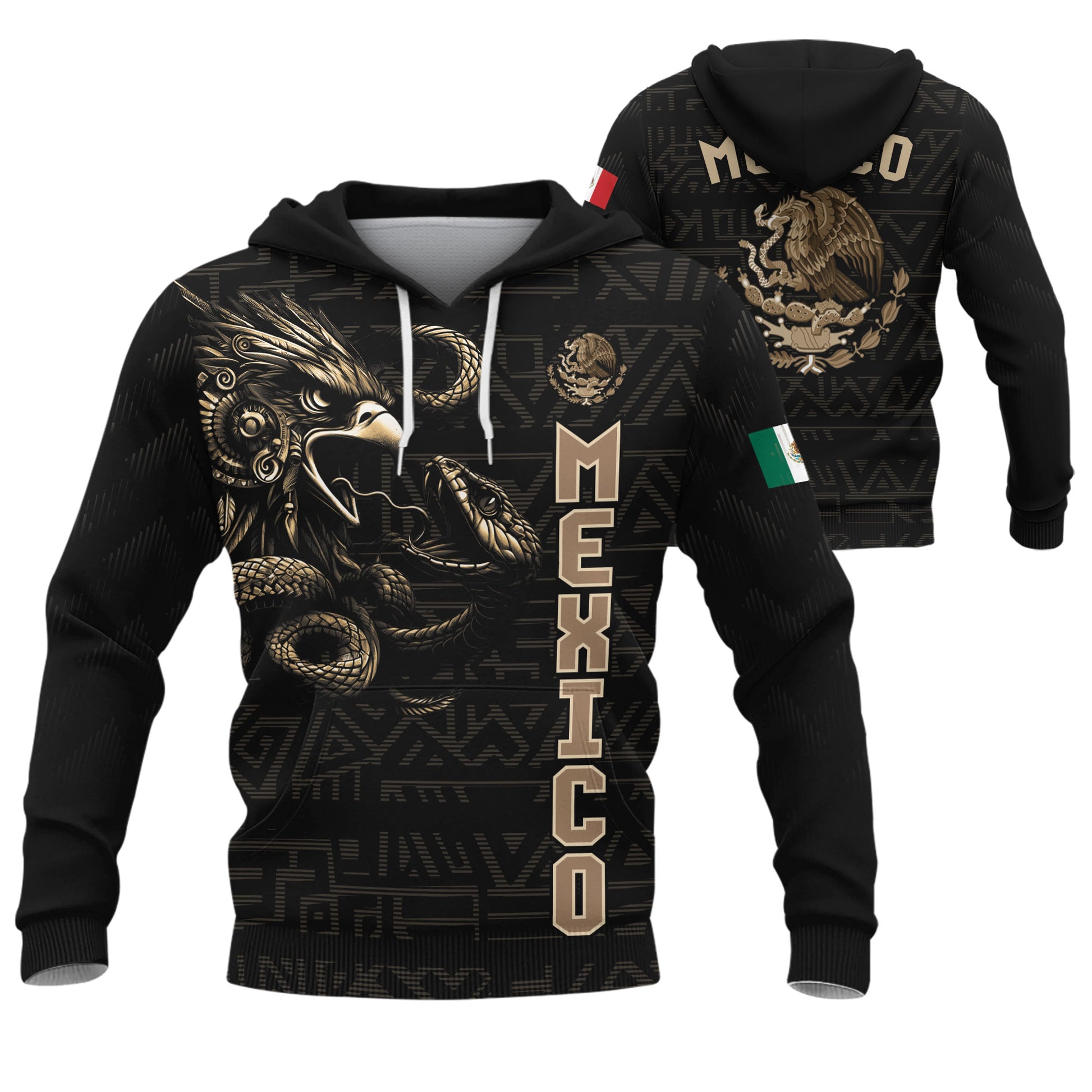 Mexican Aztec Eagle Snake National Flag Heritage Mens Sudadera De Mexico Hoodie