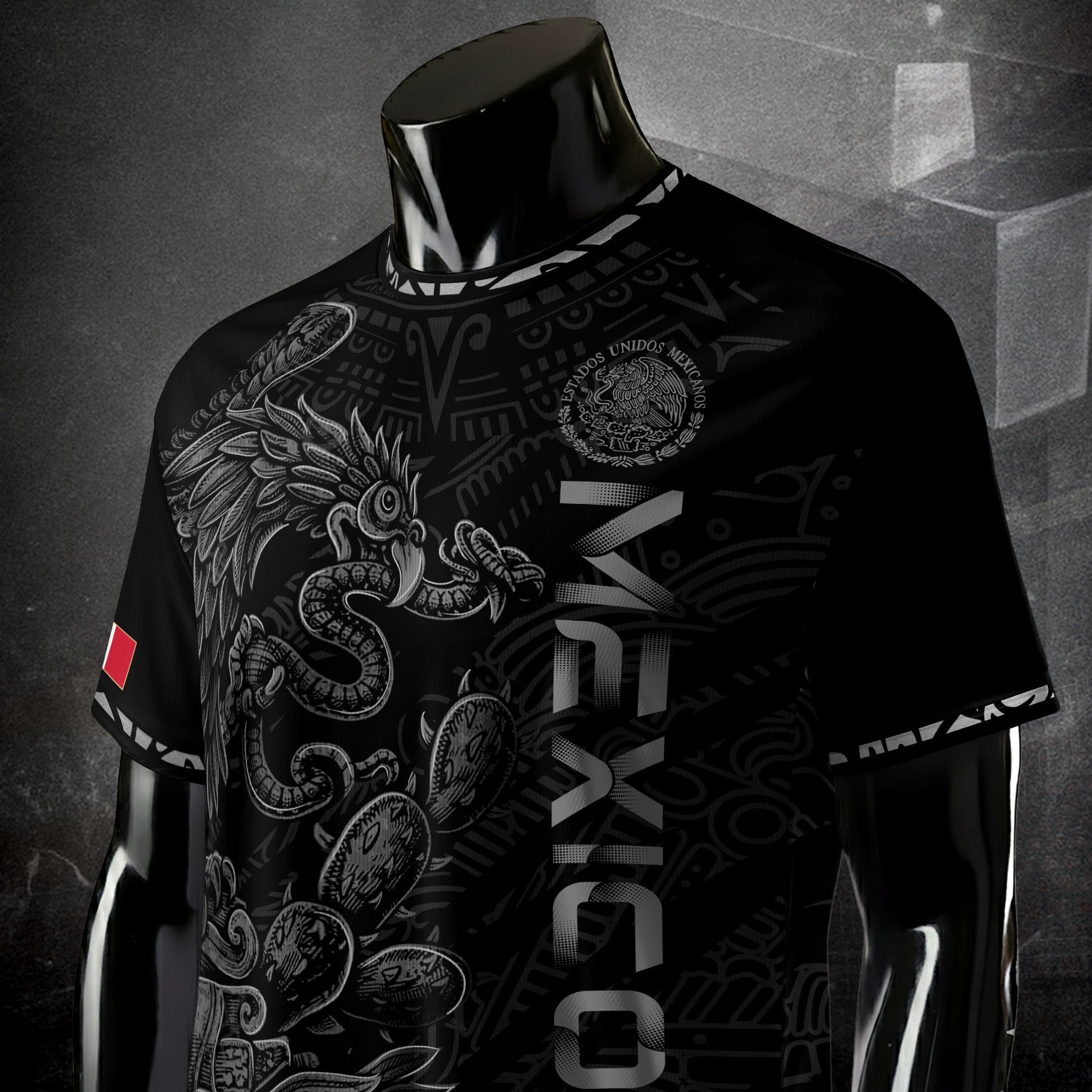 Mexico Black Grey Feathered Serpent Heritage Mens Football Soccer Jersey
