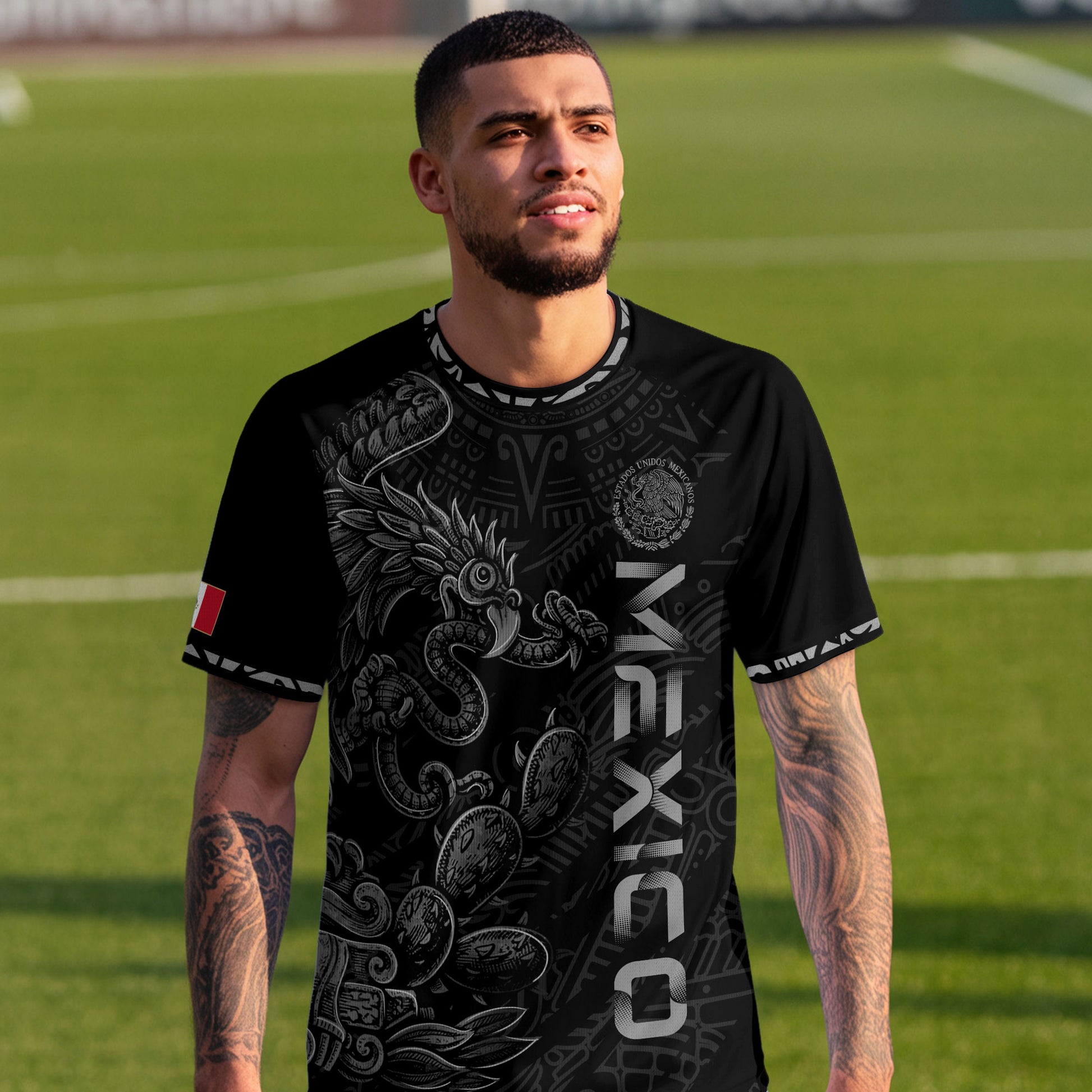 Honor Mexico’s ancient culture with this Black Grey Feathered Serpent Soccer Jersey featuring powerful Aztec symbolism. Made from high-quality polyester that is soft, lightweight, breathable, and quick-drying, it provides all-day comfort for training, game days, and casual wear.