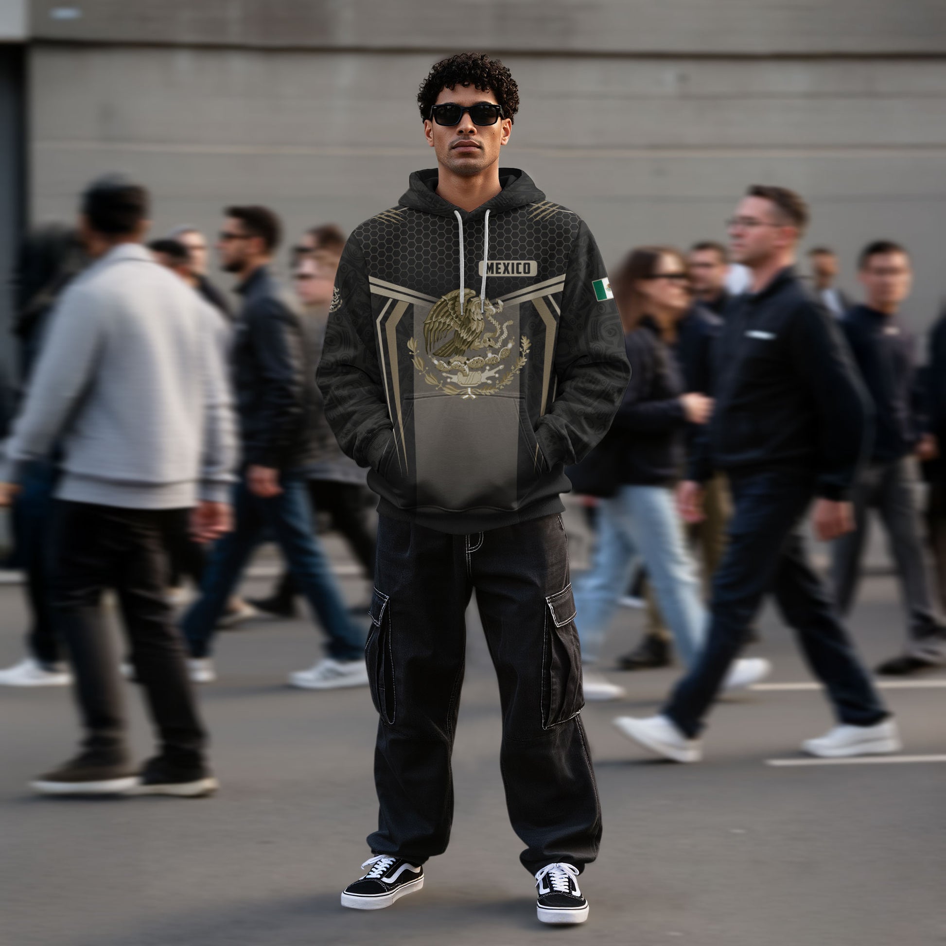Inspired by Mexican national heritage, this men’s hoodie provides a comfortable and easy-to-wear option for daily use. Ideal for expressing identity through casual style.