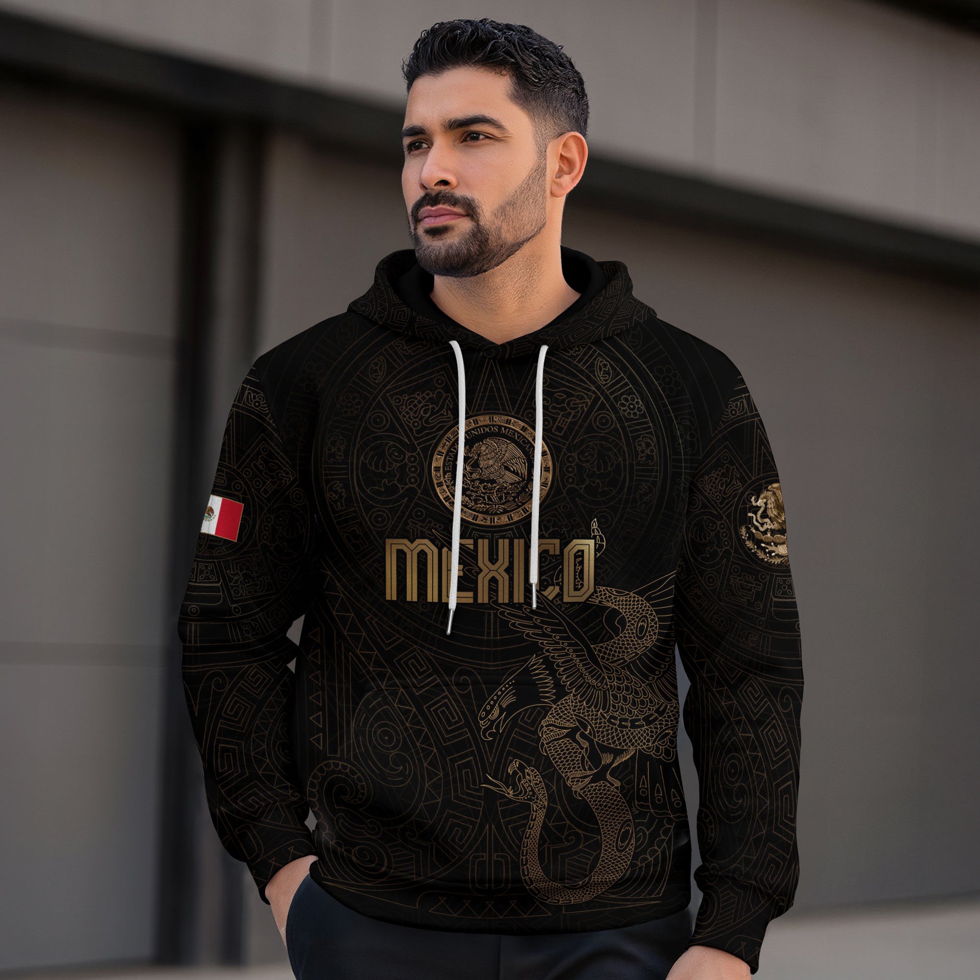 Drawing inspiration from the national seal and Aztec calendar, this hoodie blends ancient symbolism with modern style. A comfortable option for daily wear and celebrating Mexican history.