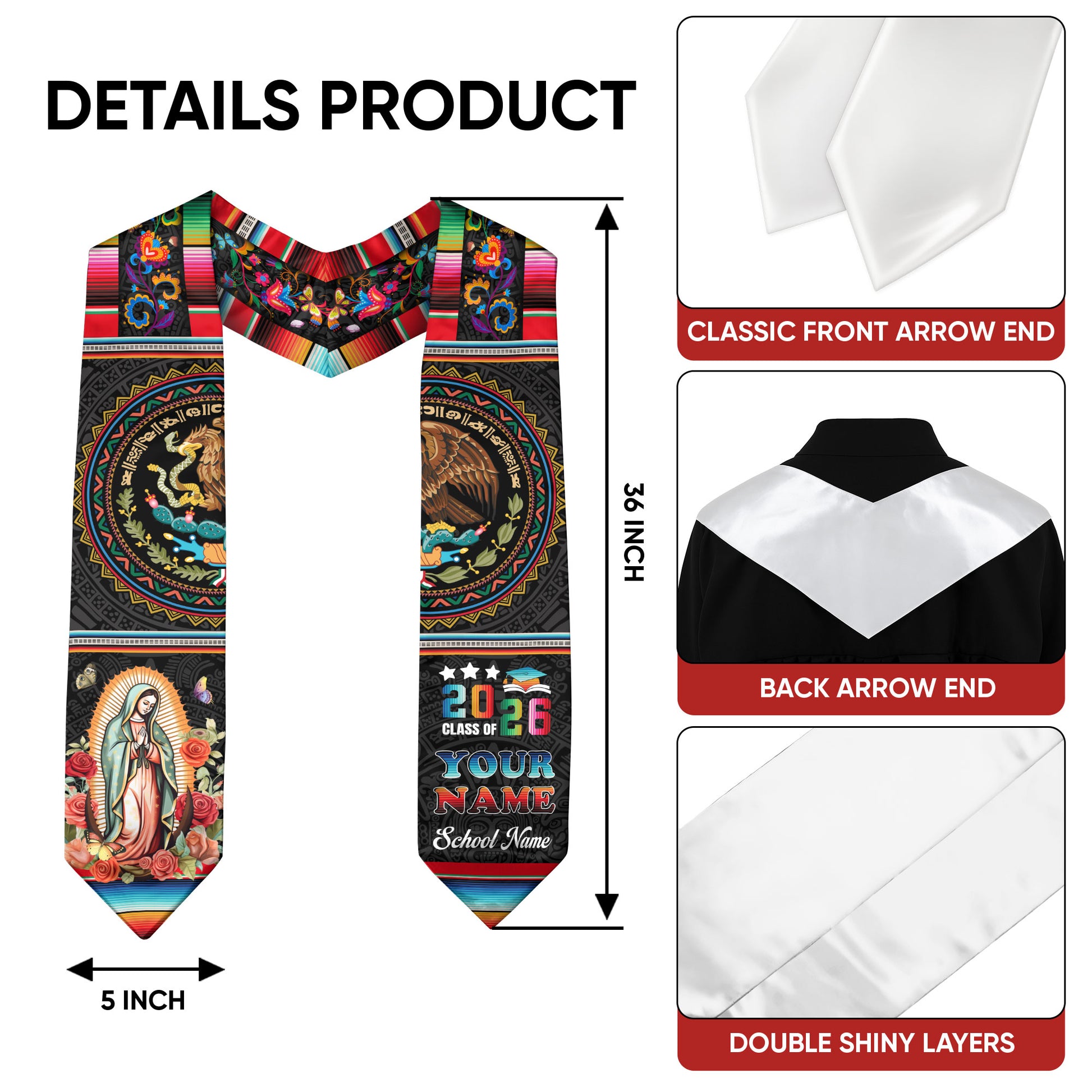 📏Standard Graduation Size:36" (91cm) long × 5" (12cm) wide — fits comfortably over all graduation gowns.