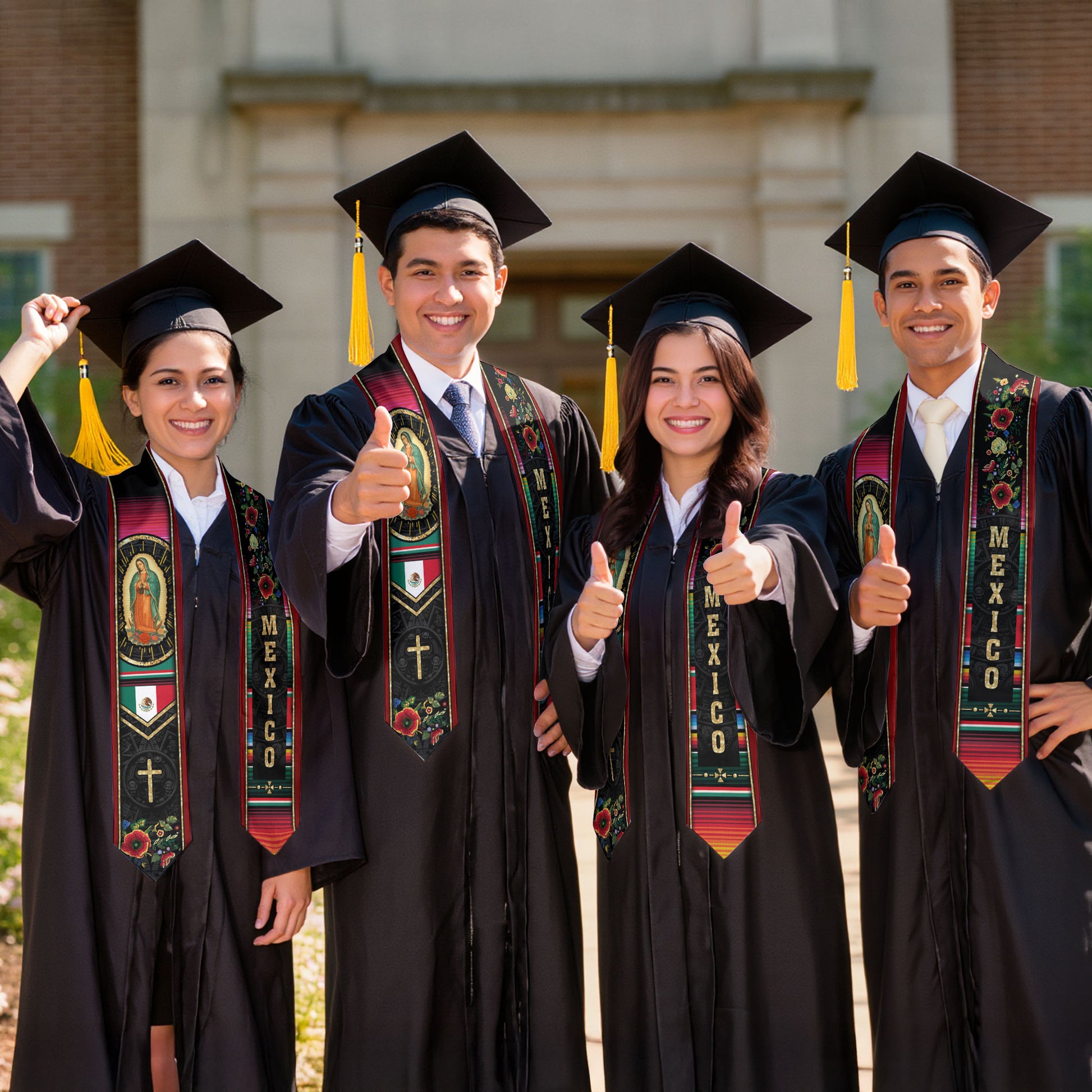 Mexican Graduation Stole Mexico Sash Aztec Virgin Mary Cross Serape Flowers