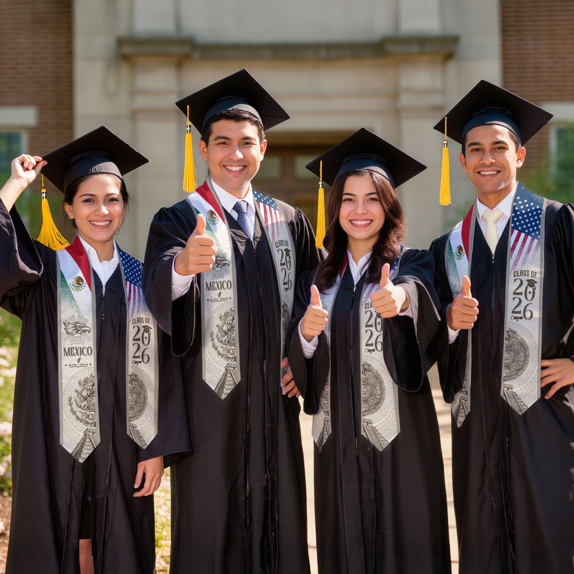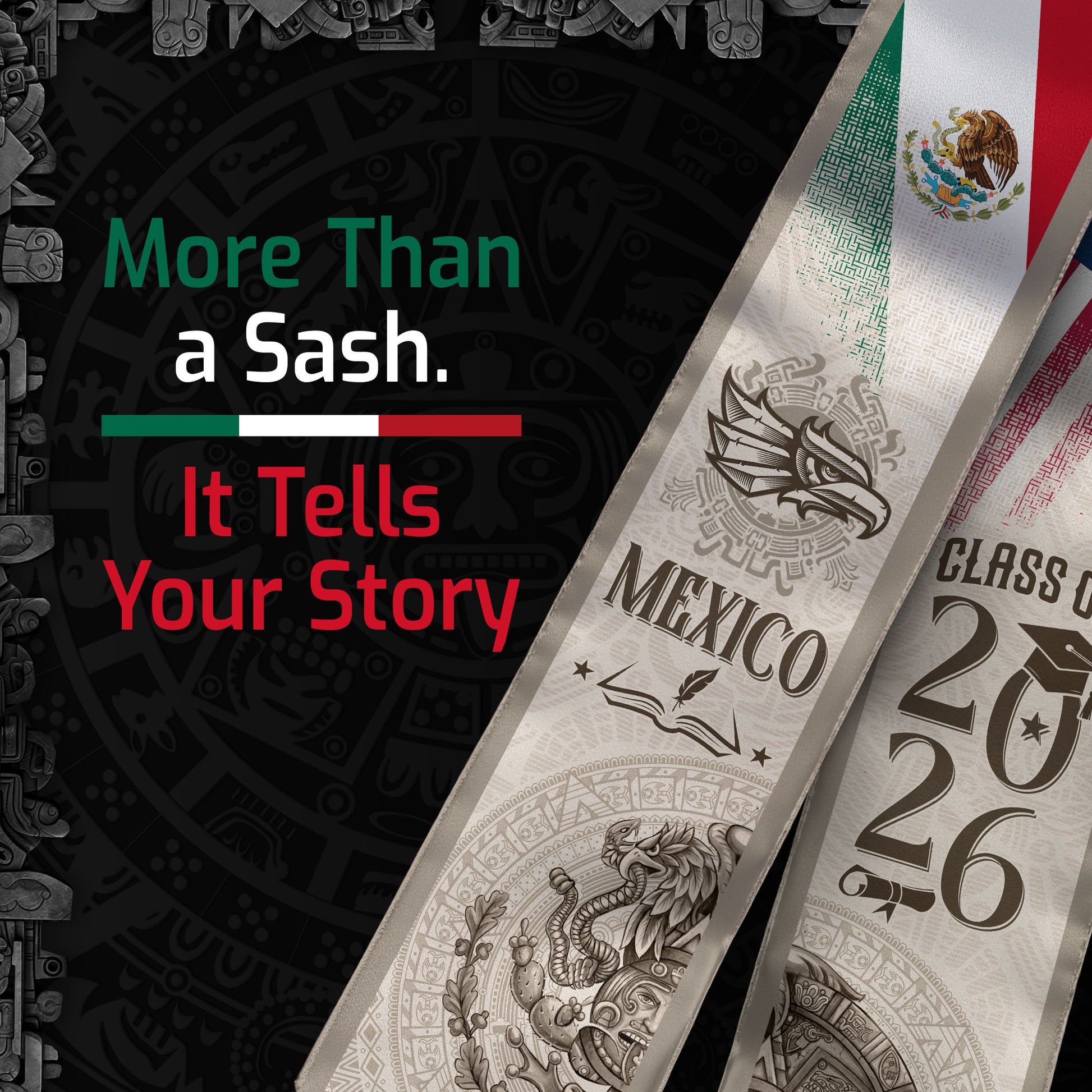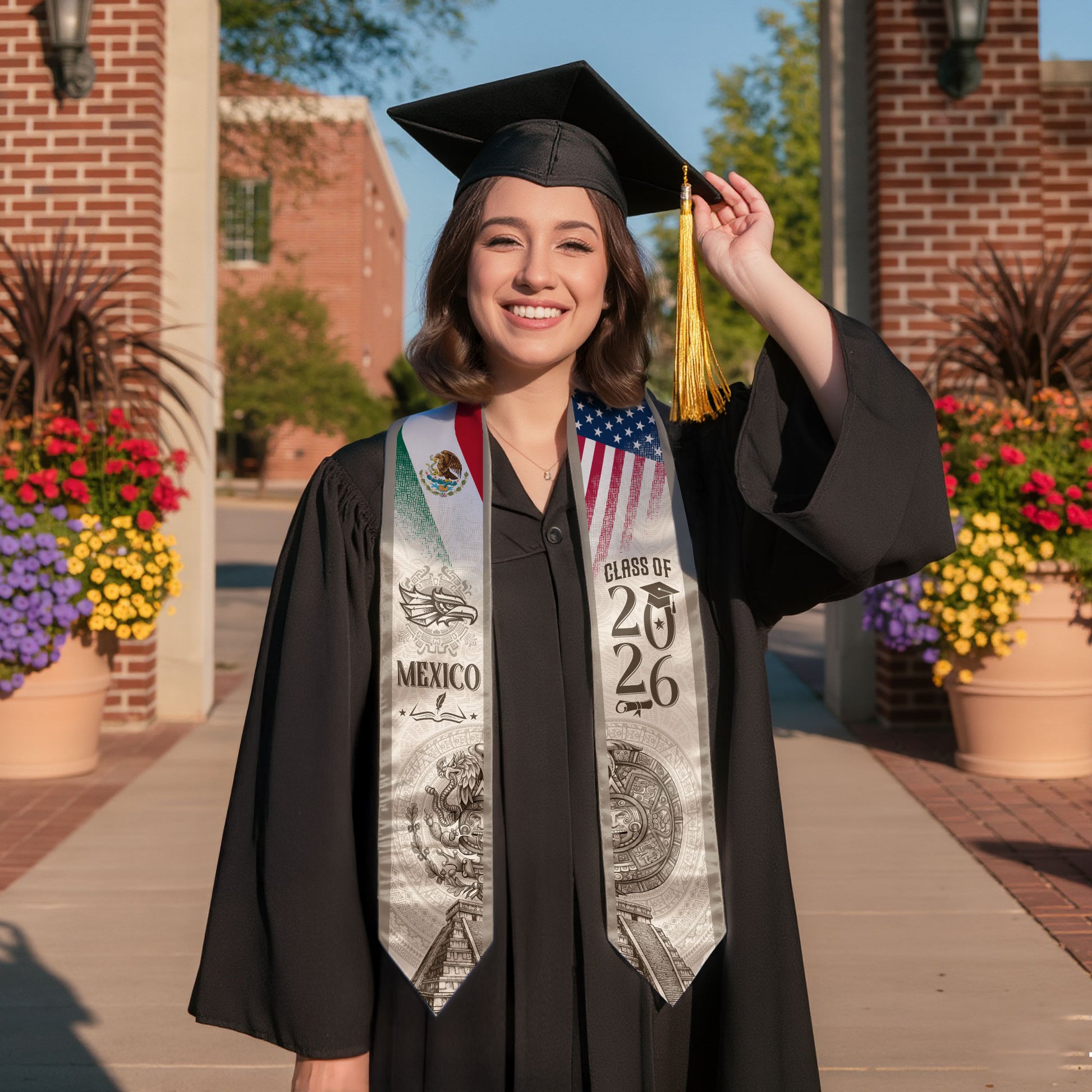 Mexican Graduation Stole Mexico USA Flag Aztec Calendar Eagle Pyramid 2026