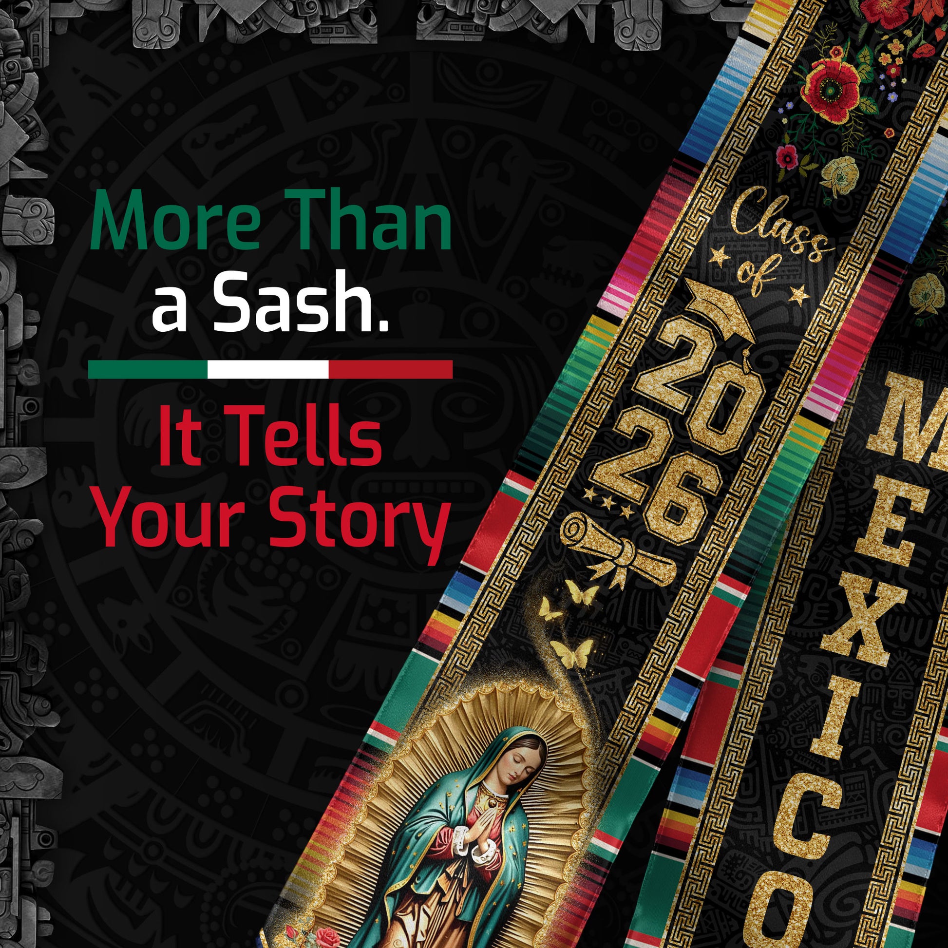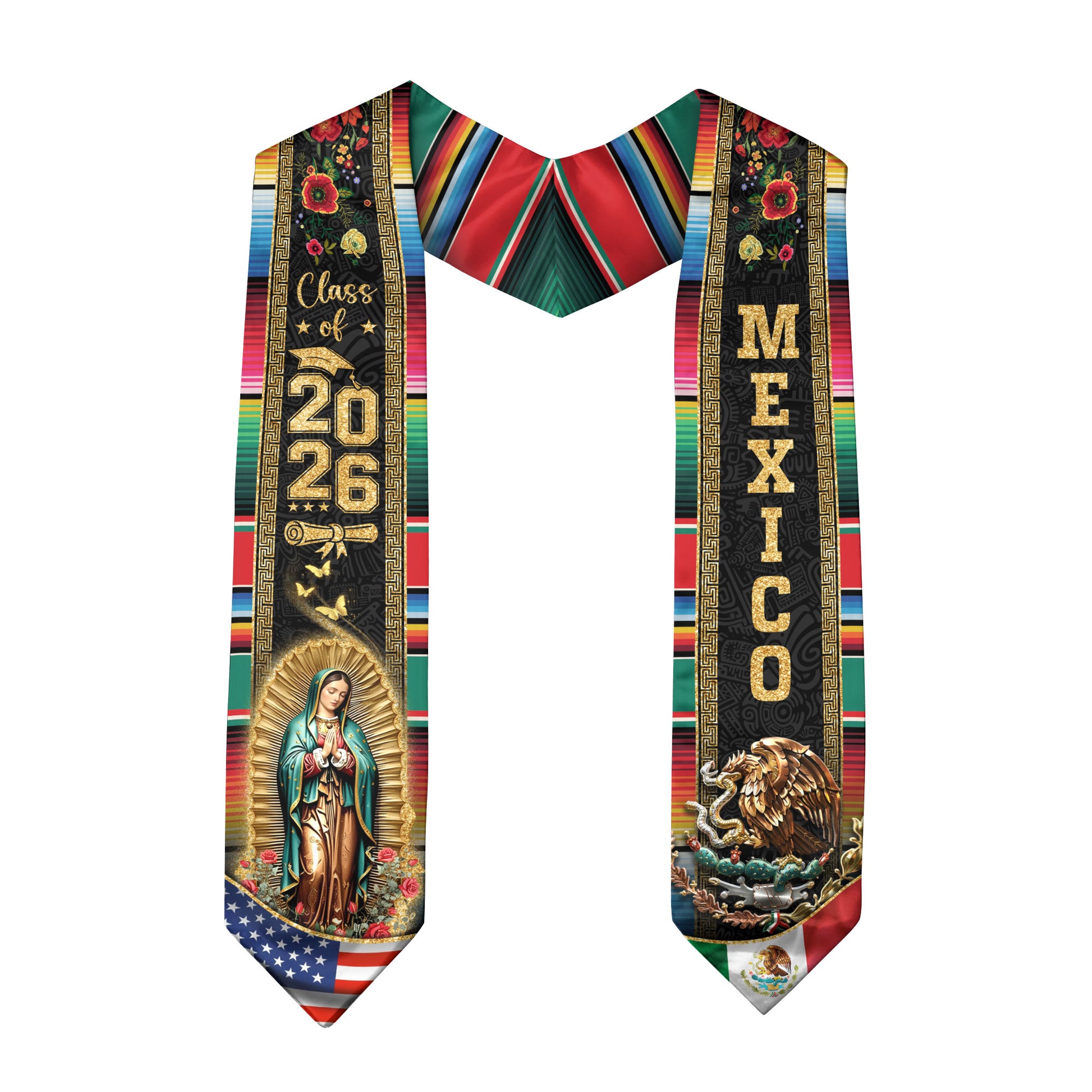 Mexican Graduation Stole Mexico USA Flag Aztec Eagle Virgin Mary Serape 2026