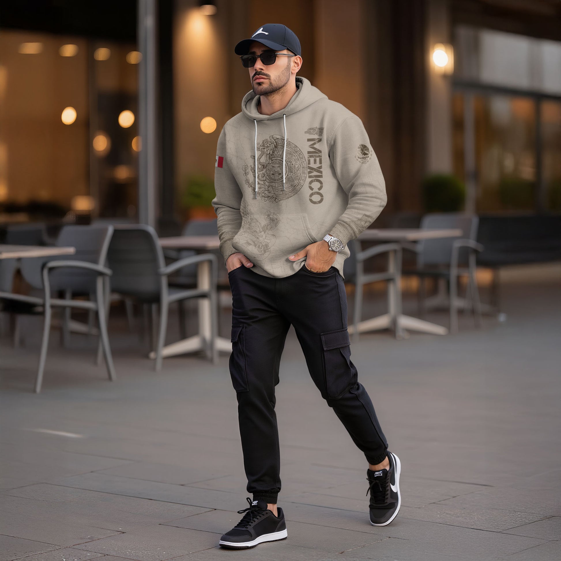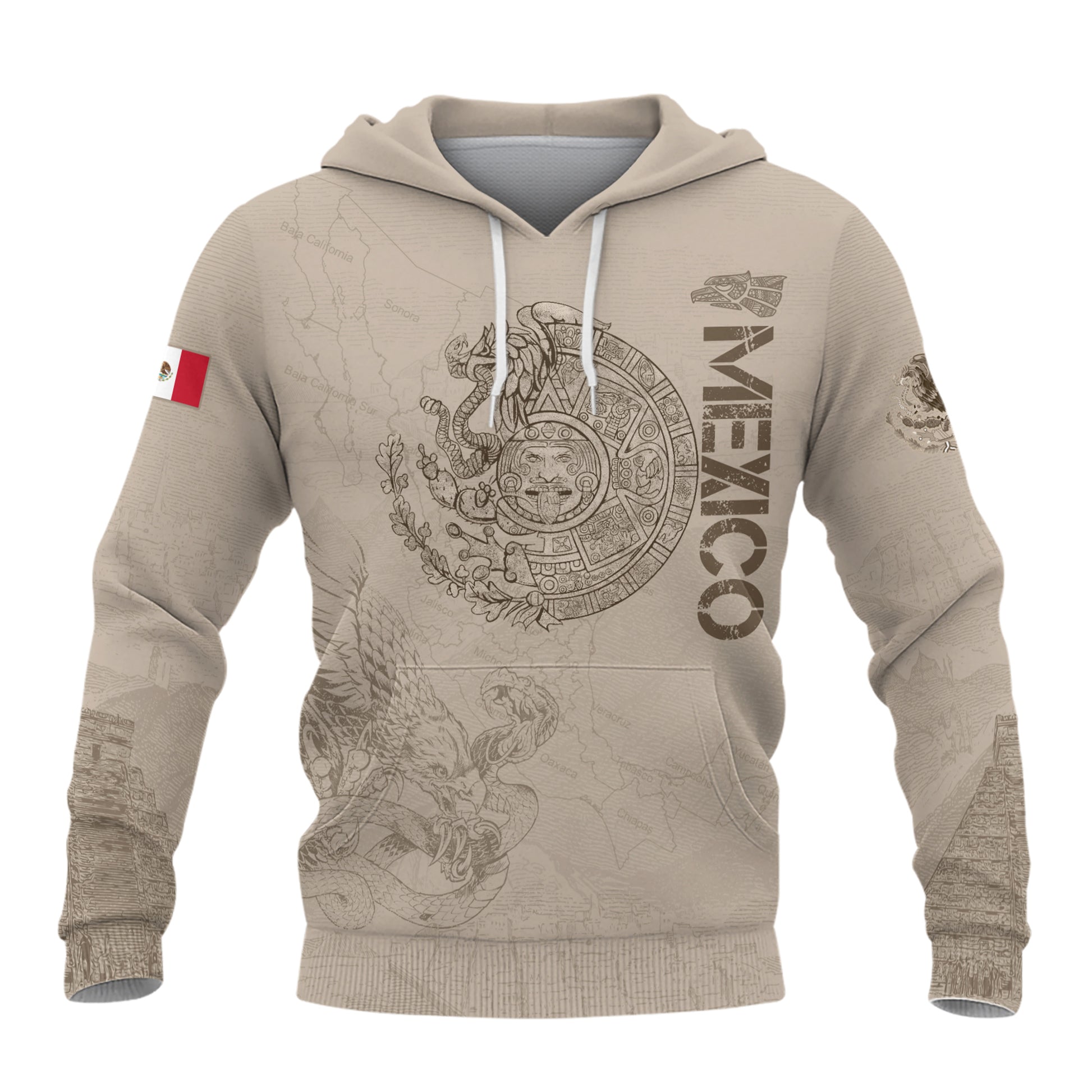 Featuring a tan-toned Aztec calendar design with eagle elements, this hoodie highlights Mexico’s historical map and heritage. Comfortable and versatile for everyday outfits with cultural meaning.