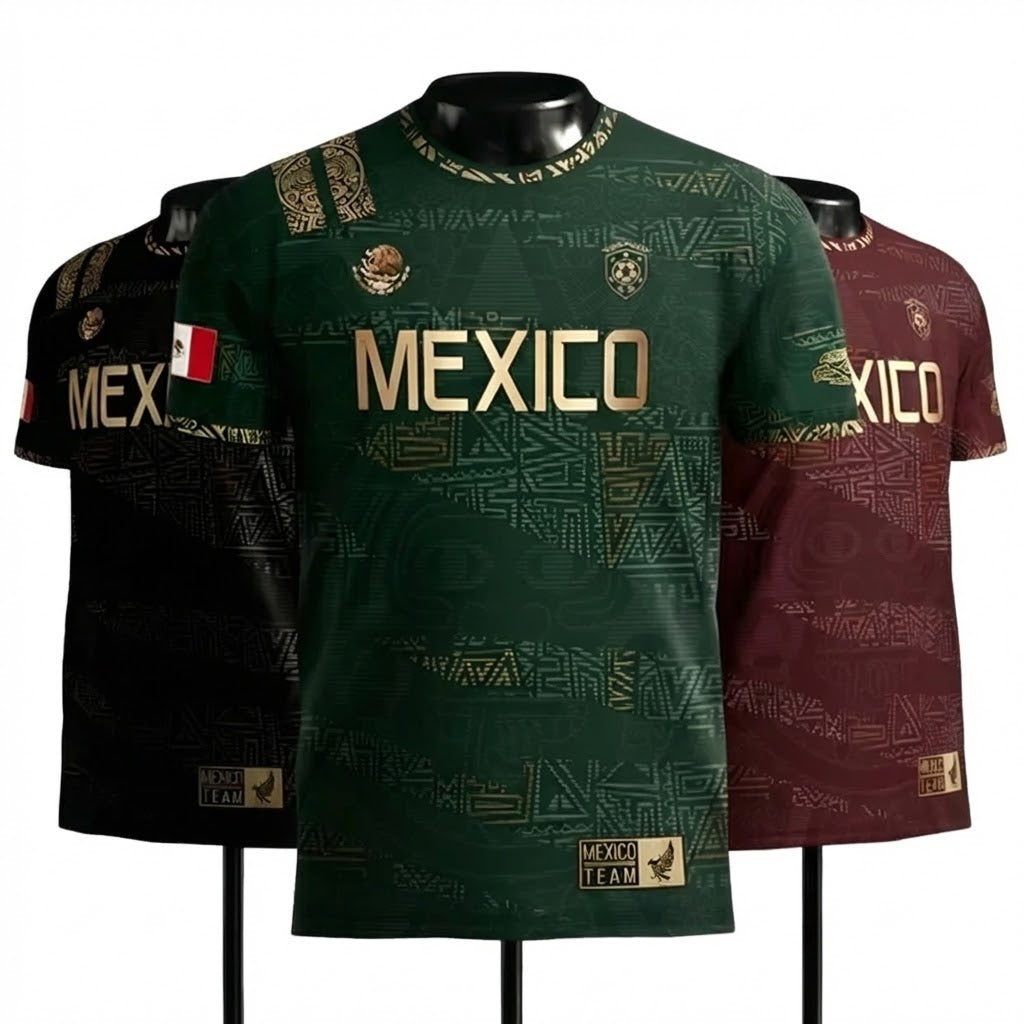 Mexico Aztec Heritage Soccer Jersey 3-Pack Bundle – Green Gold + Burgundy Gold Eagle Crest + Black Gold Eagle Crest