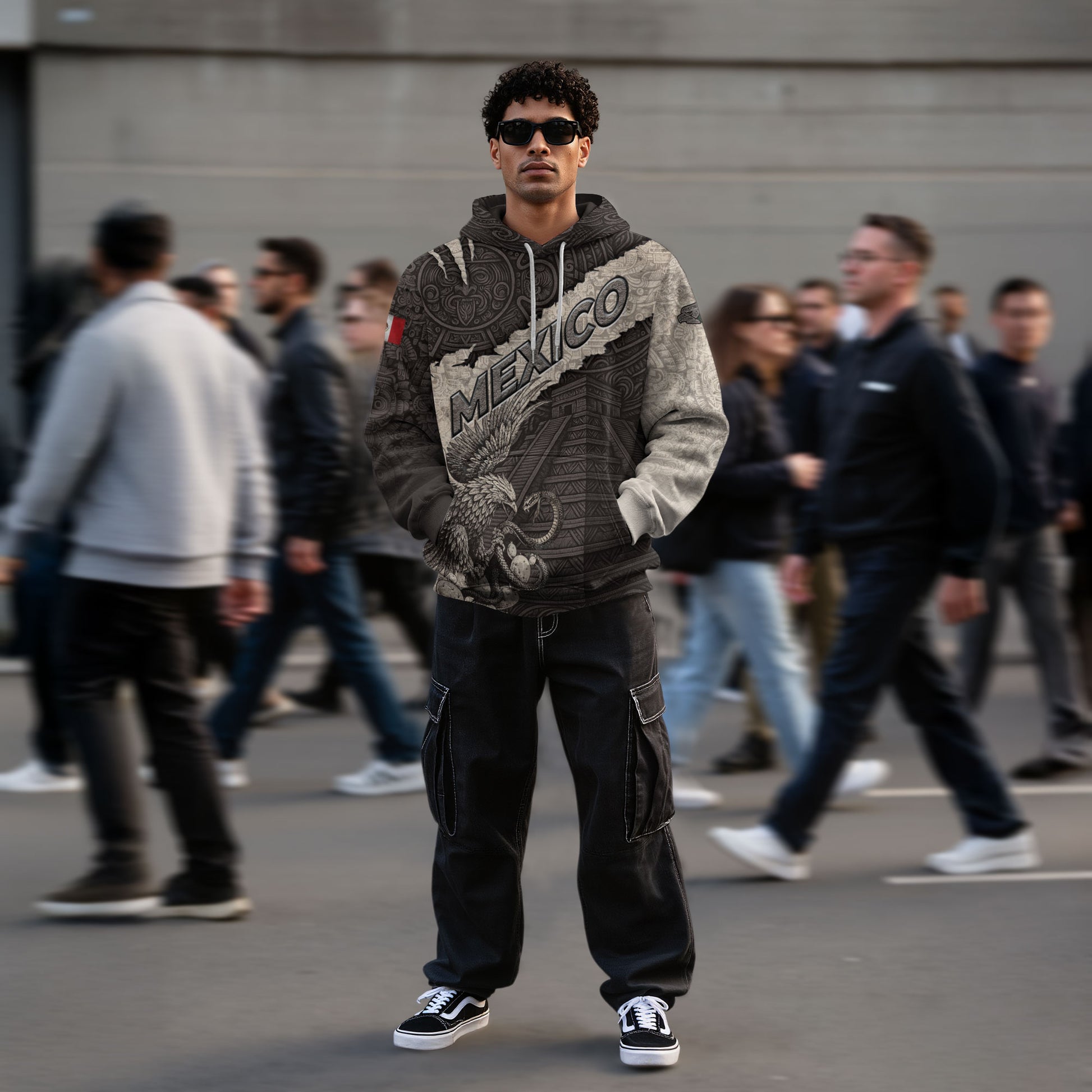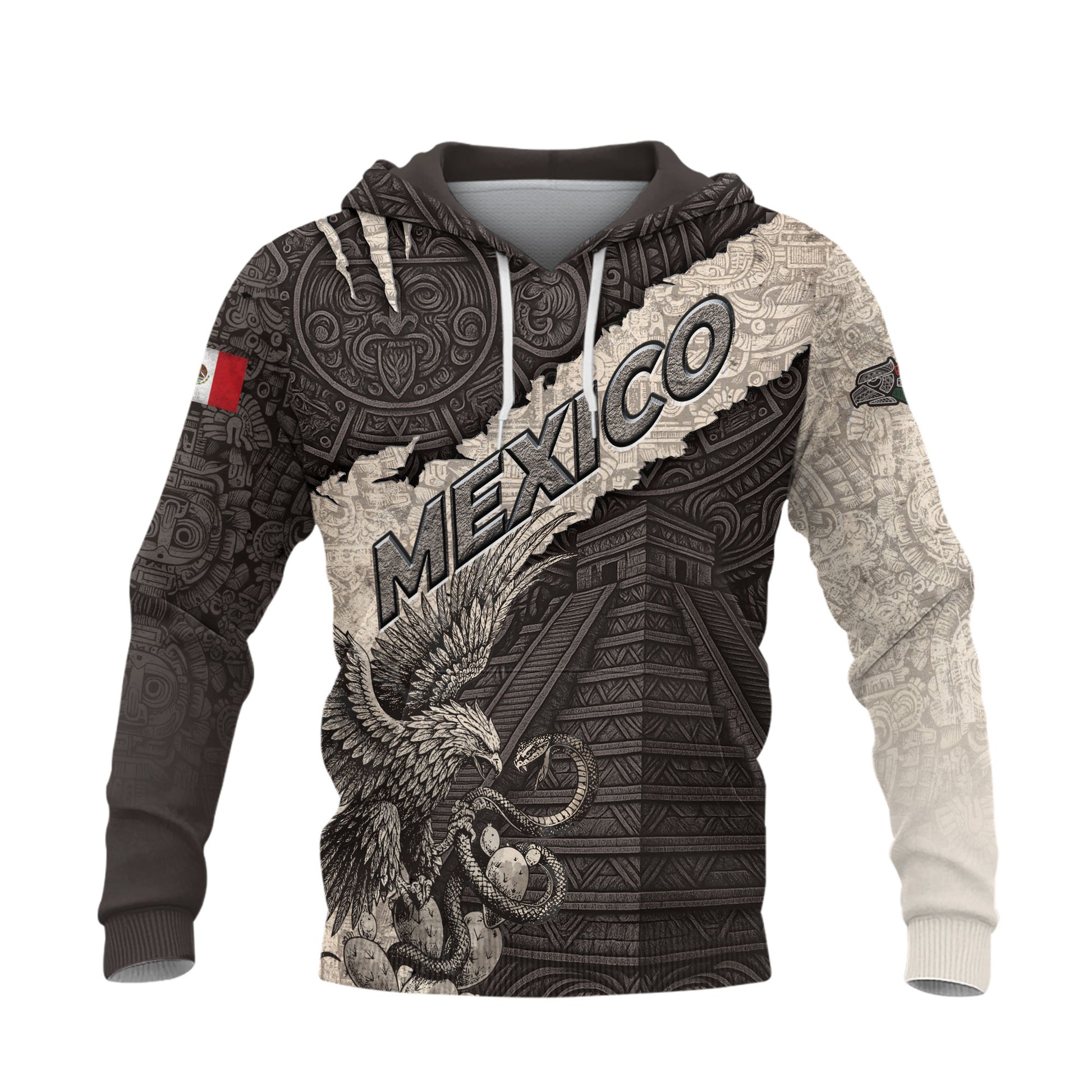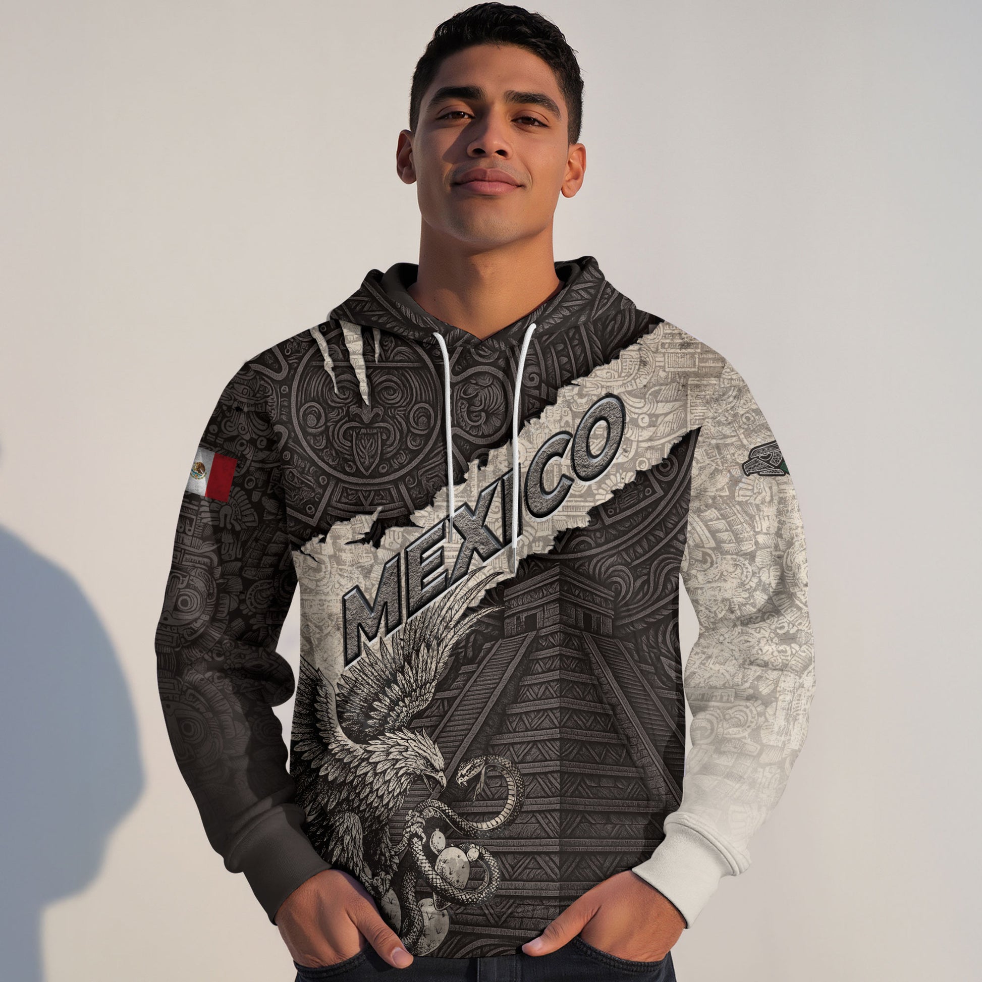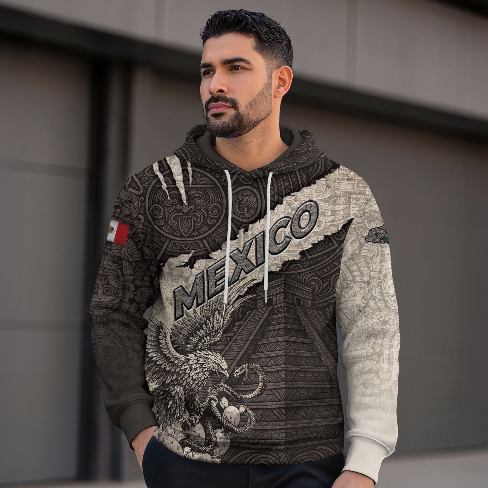 Mexico Aztec Pyramid Eagle Serpent Heritage Stone Pattern Warrior Pride Hoodie