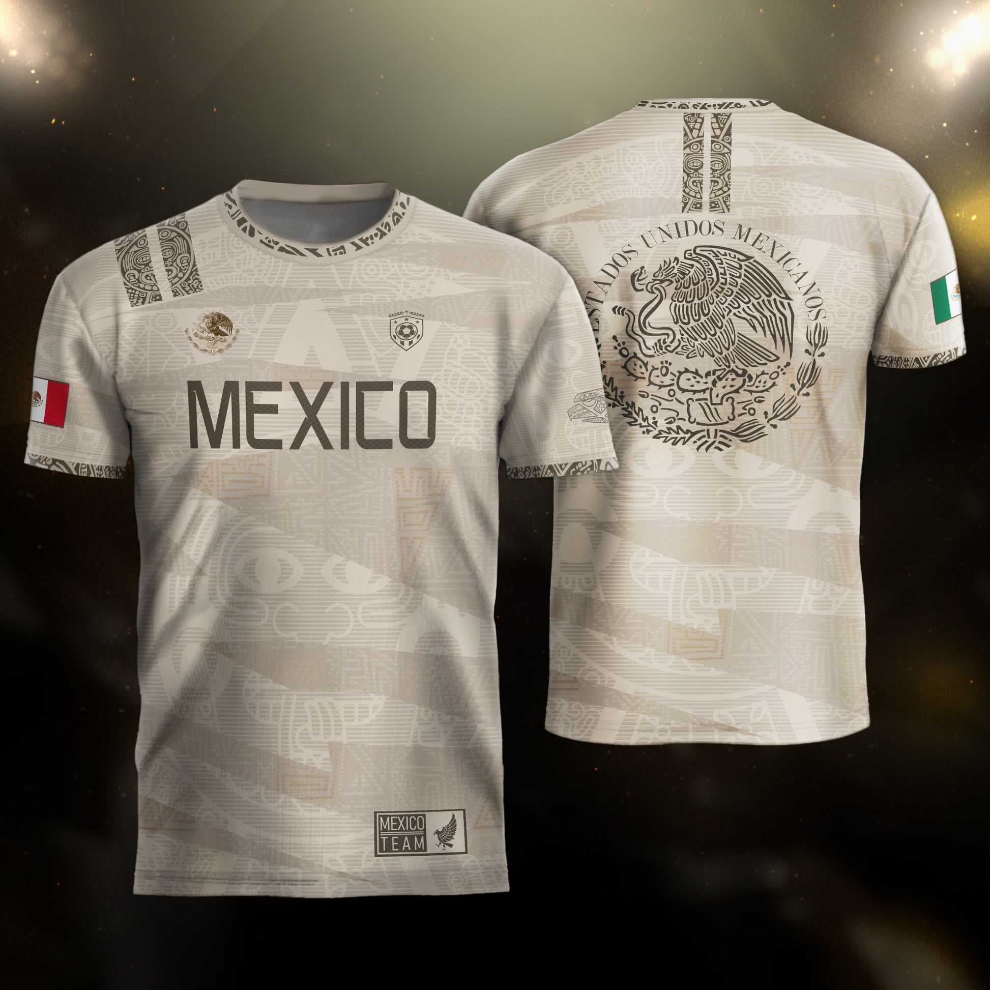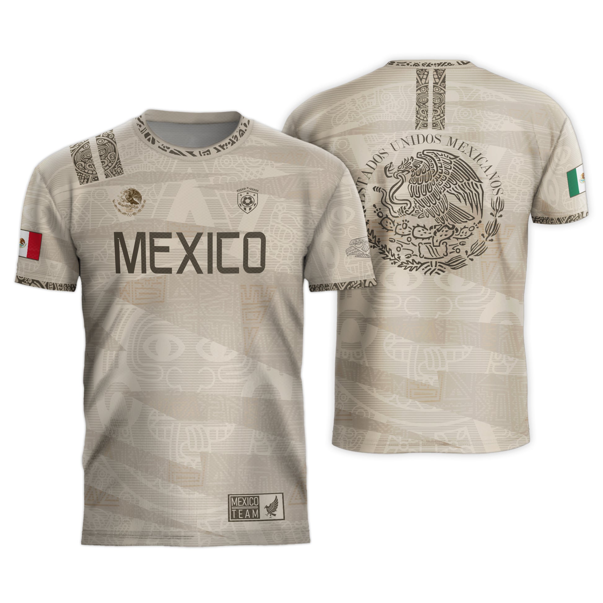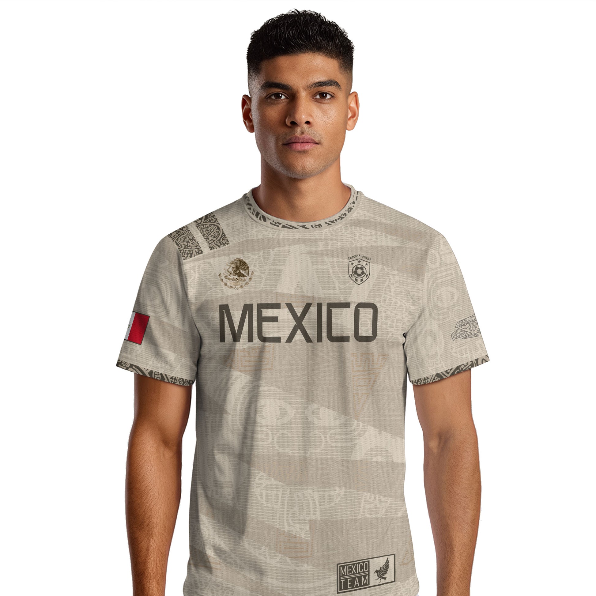 Show your Mexican pride with this beige Aztec-inspired jersey — elegant design, national emblem, and deep cultural roots.