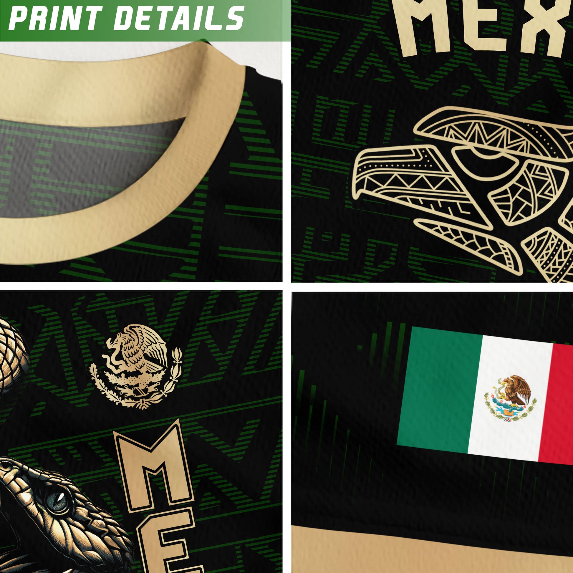 Mexico Black Gold Aztec Eagle Serpent Soccer Jersey