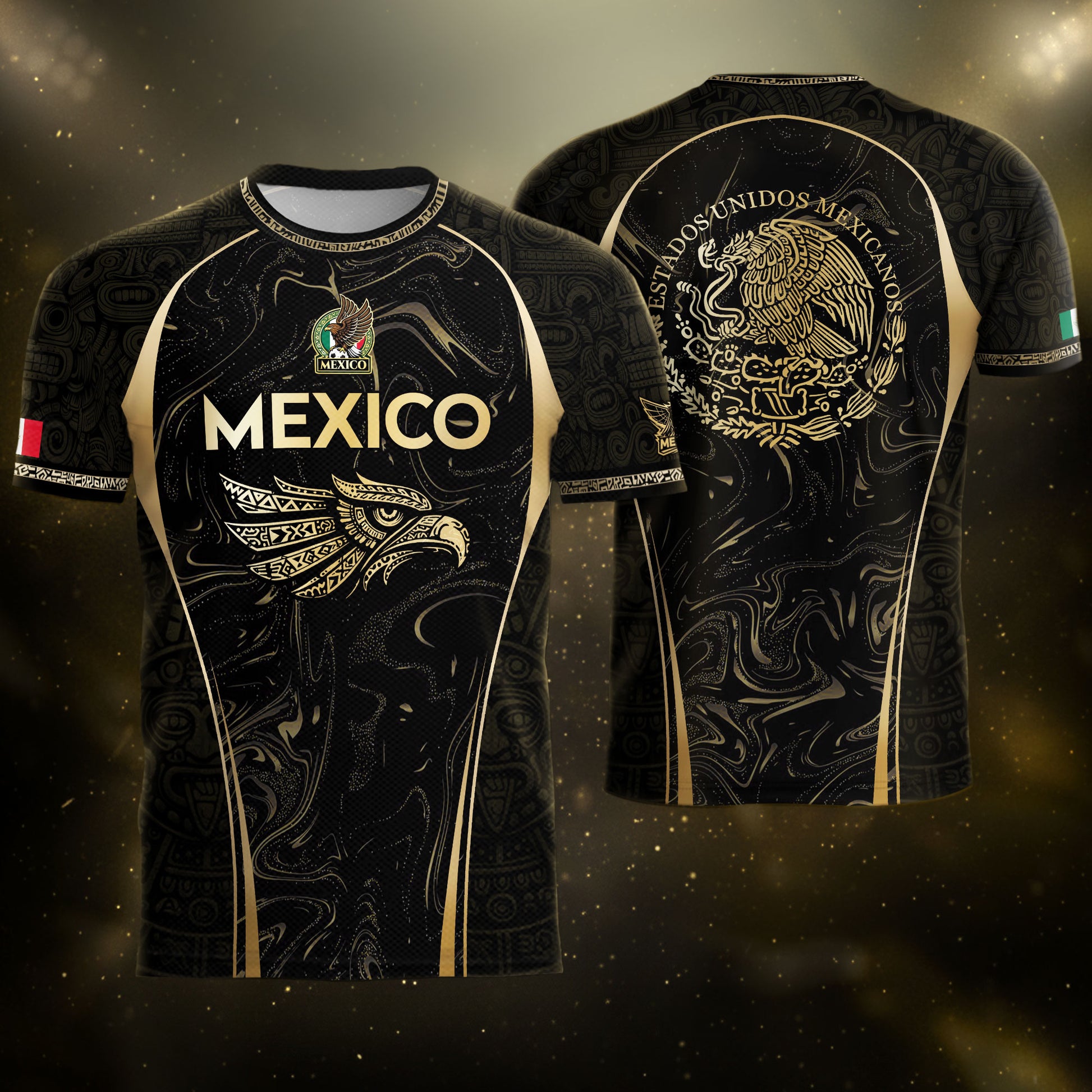 Mexico Coat of Arms Black Gold Aztec Eagle Warrior Heritage Soccer Jersey