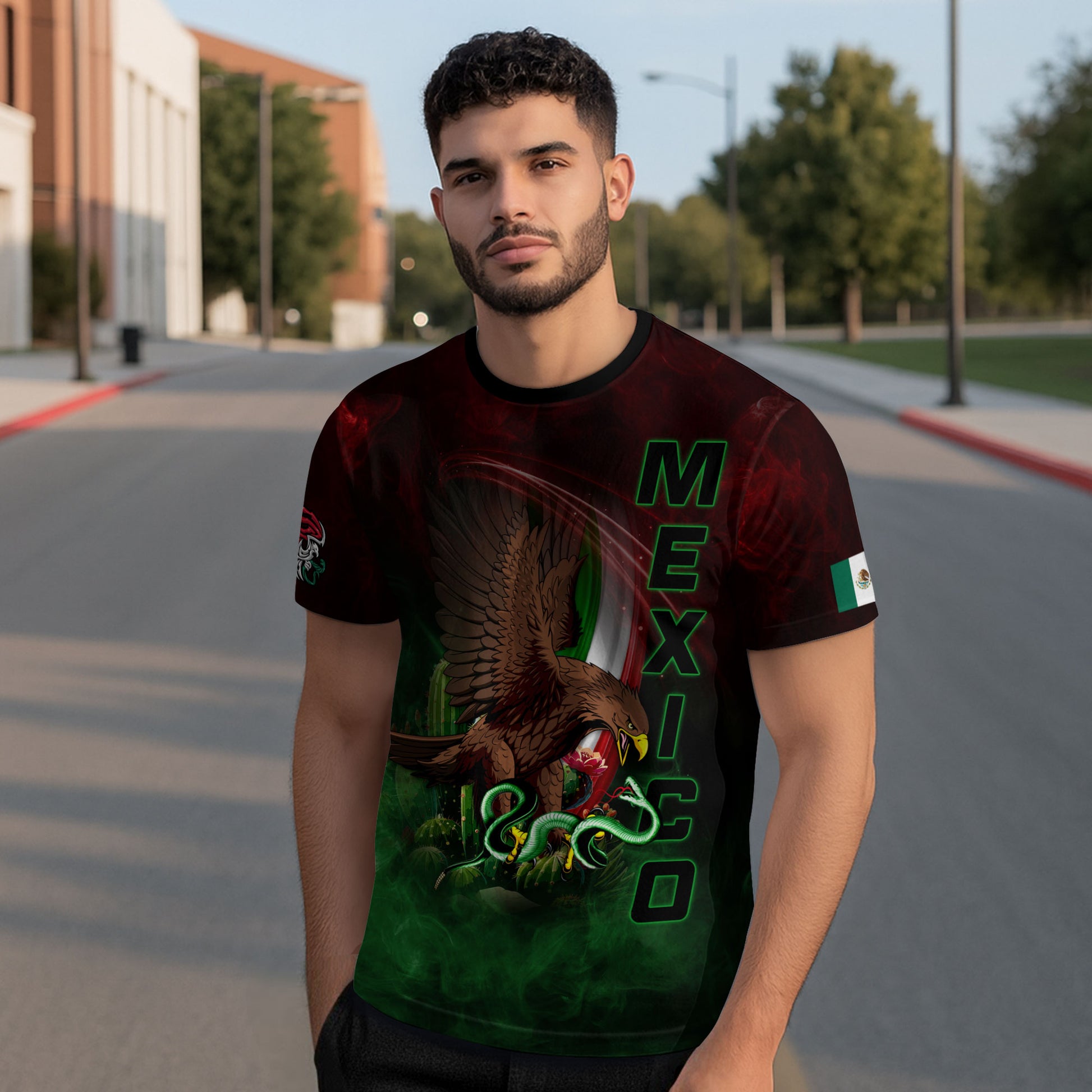 Show your Mexican pride with this 3D Eagle and Serpent shirt. The Aztec-inspired design and national colors capture heritage, unity, and warrior spirit.