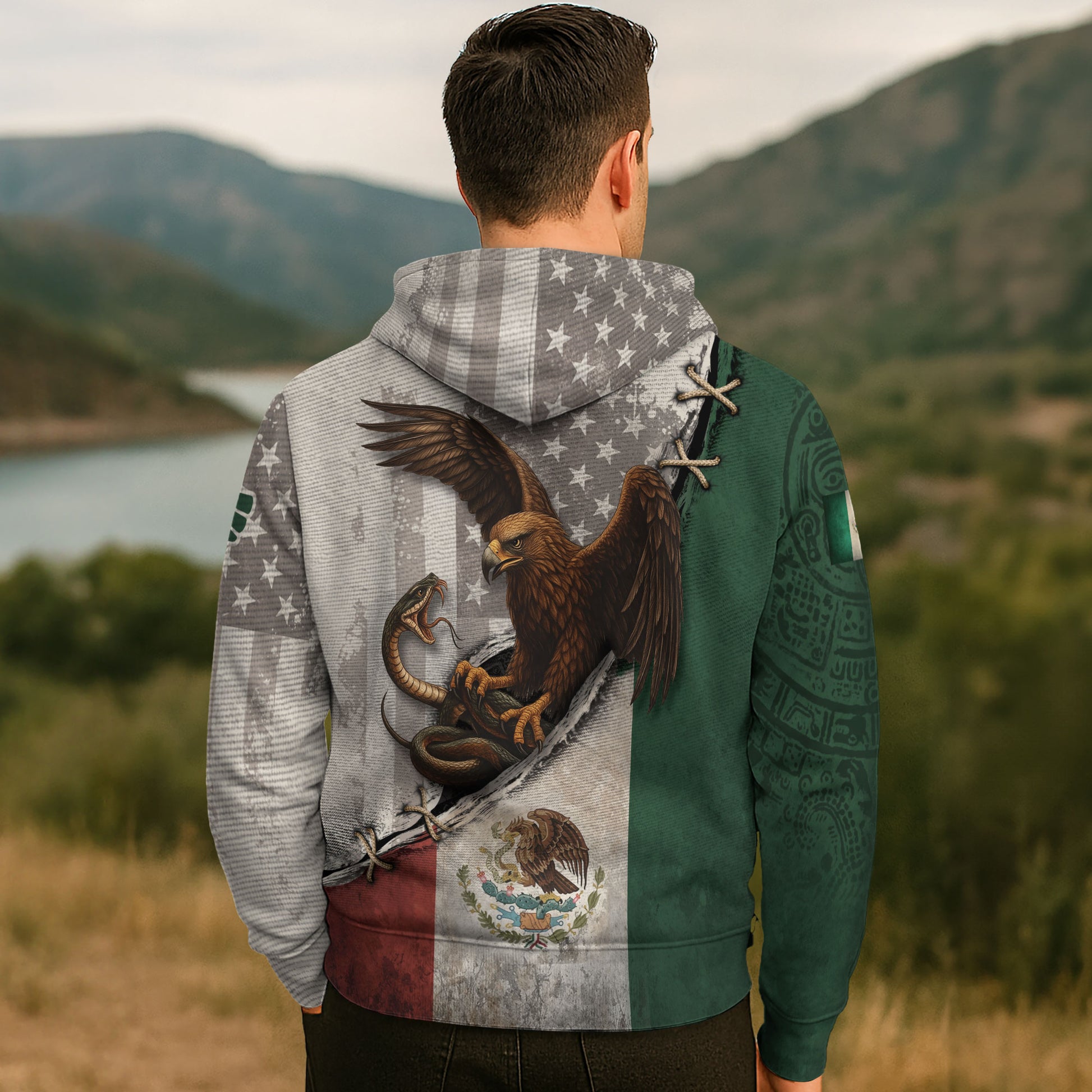 Mexico Flag Eagle Serpent Aztec Pattern Heritage Power Warrior Pride Hoodie