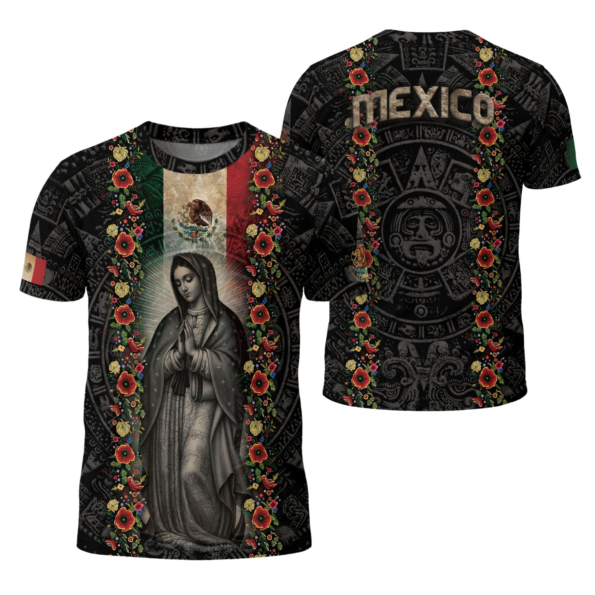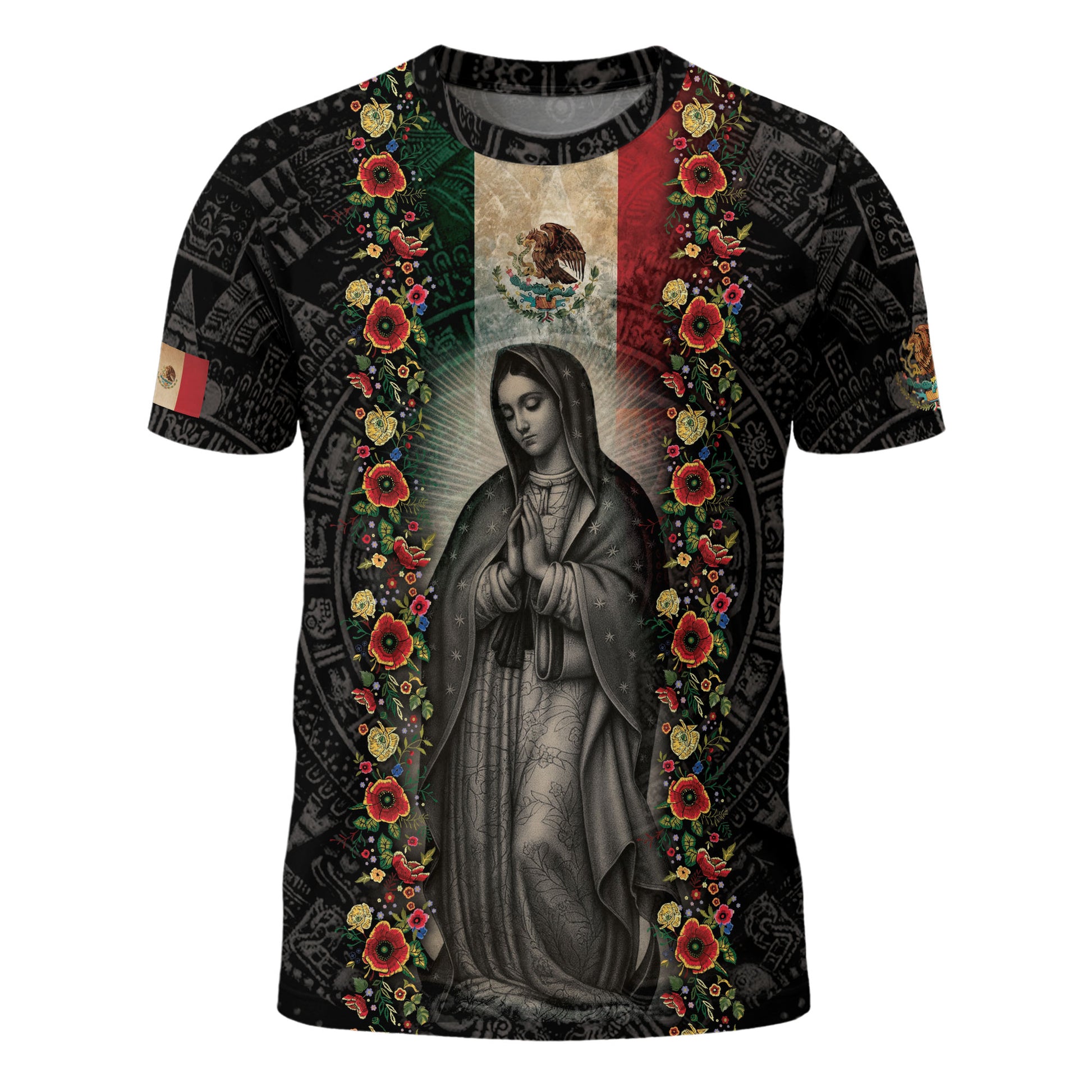 Mexico Flag Guadalupe Aztec Floral Heritage Legacy Pride Shirt