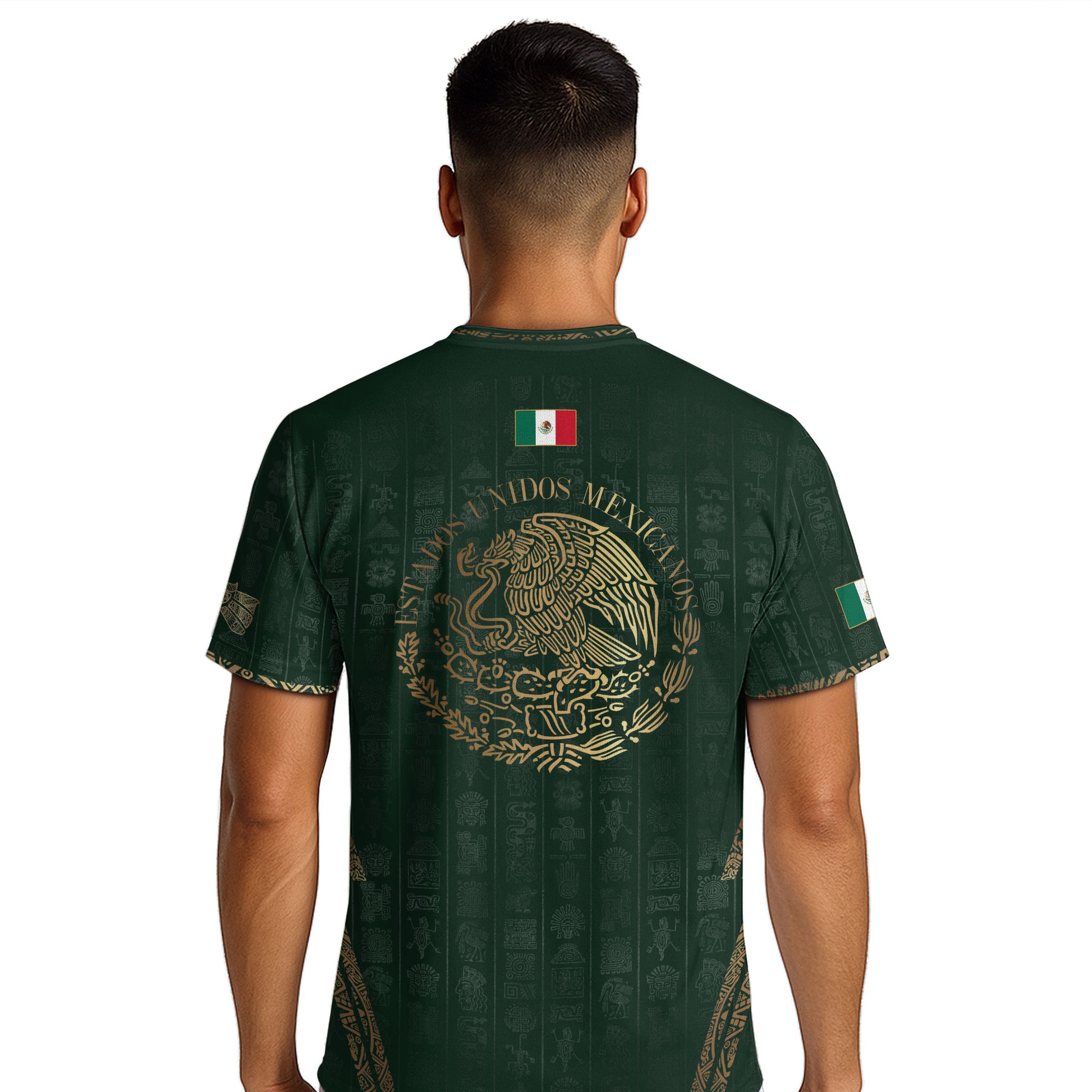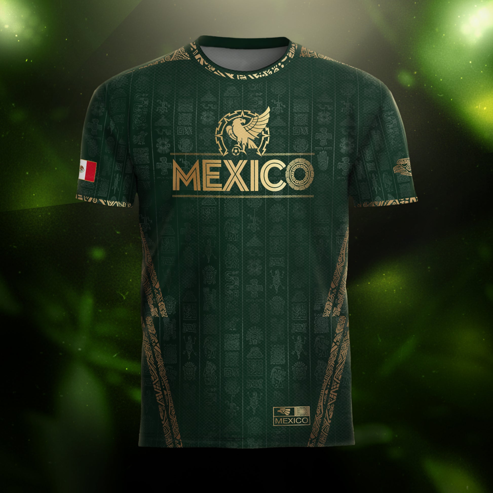 Celebrate Mexico’s pride with this green Aztec eagle jersey — gold accents and cultural artistry meet modern soccer style.