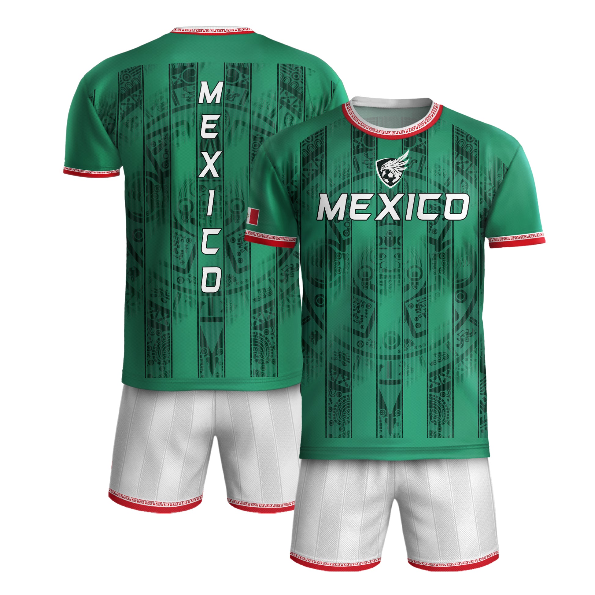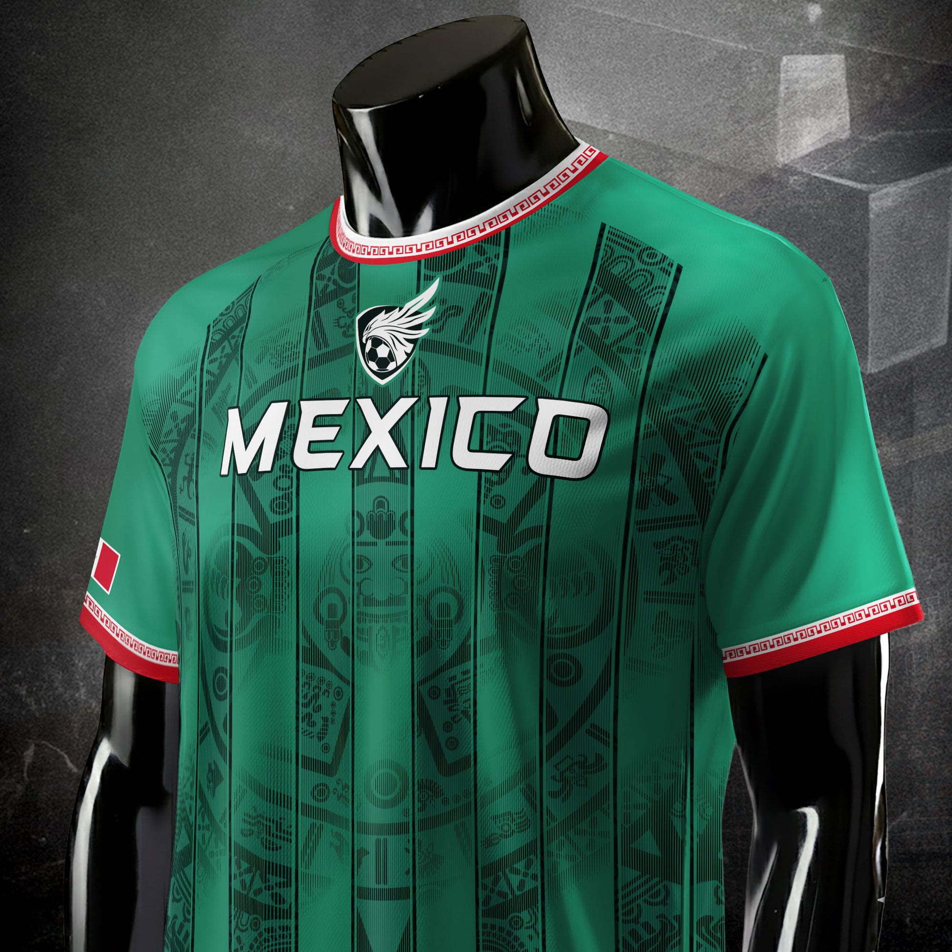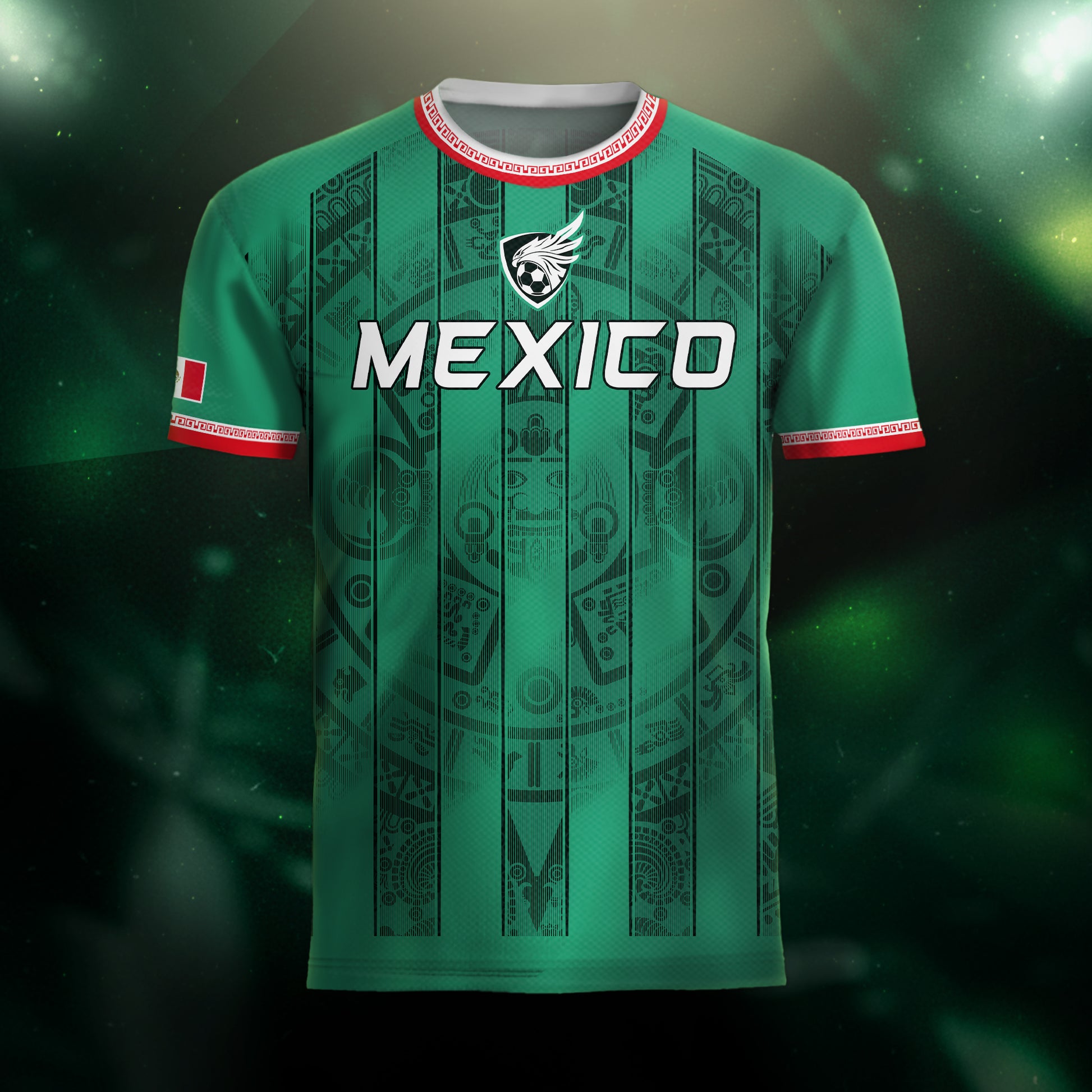 Honor Mexico’s heritage with this Green Aztec Pattern Soccer Jersey showcasing bold indigenous designs and national pride. Made from high-quality polyester that is soft, lightweight, breathable, and quick-drying, this jersey delivers comfort and performance for matches, training, and everyday wear.