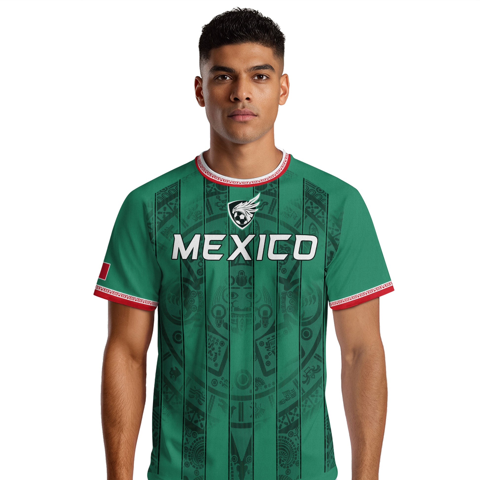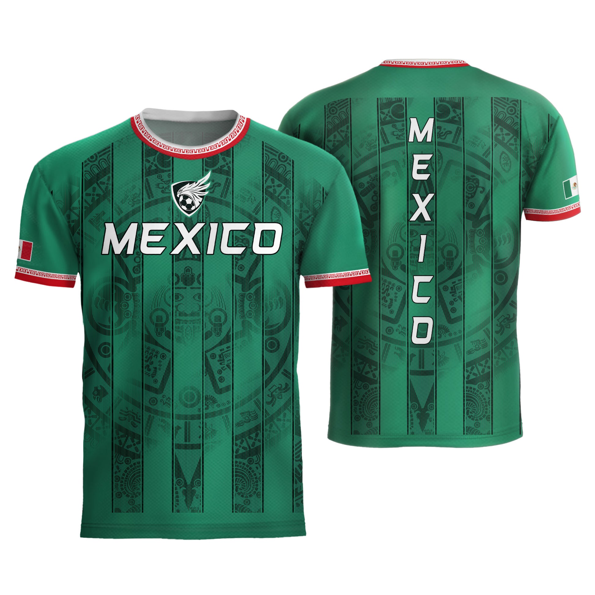 Mexico Green Aztec Pattern National Pride Mens Culture Football Soccer Jersey