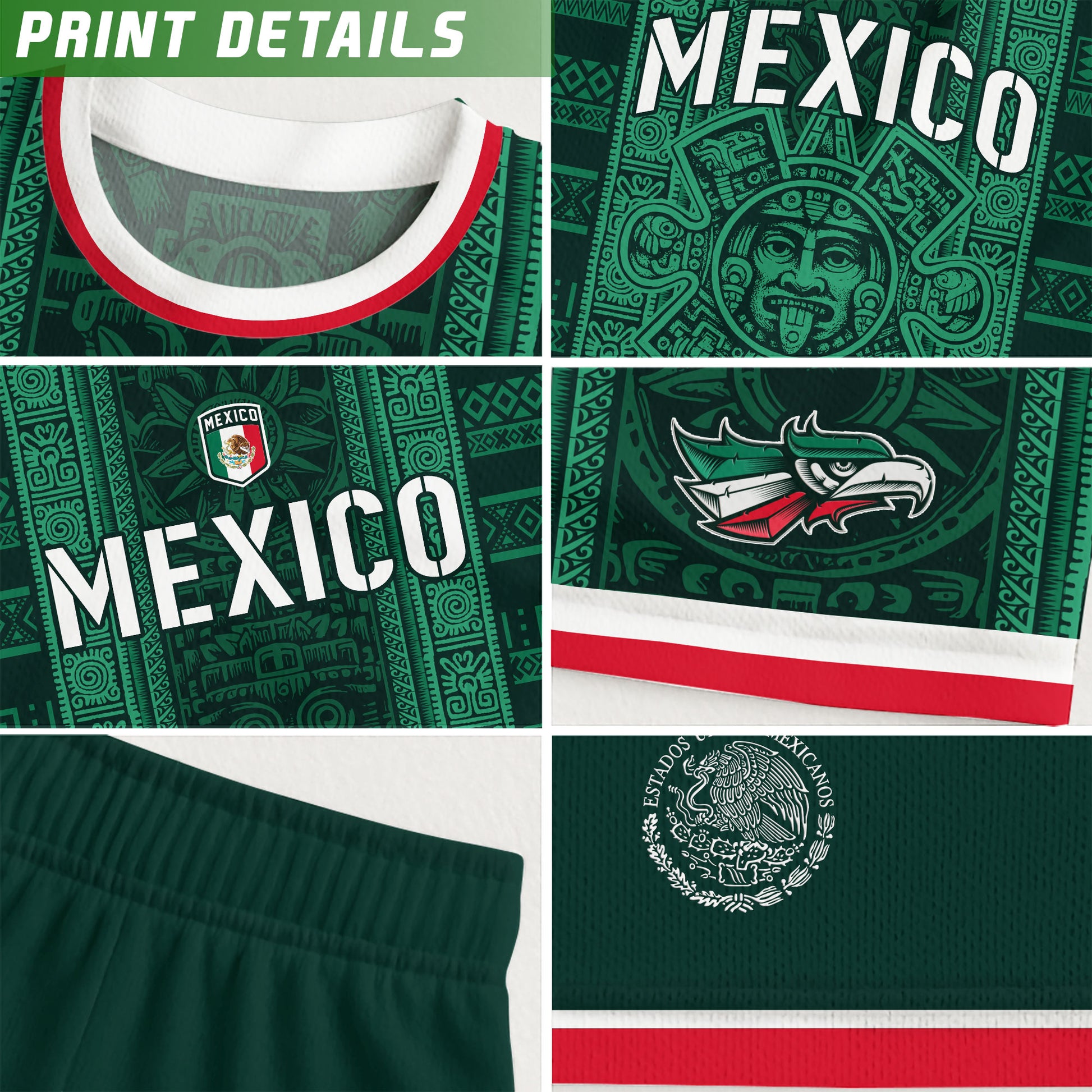 Mexico Green Aztec Warrior Pattern Heritage Soccer Jersey