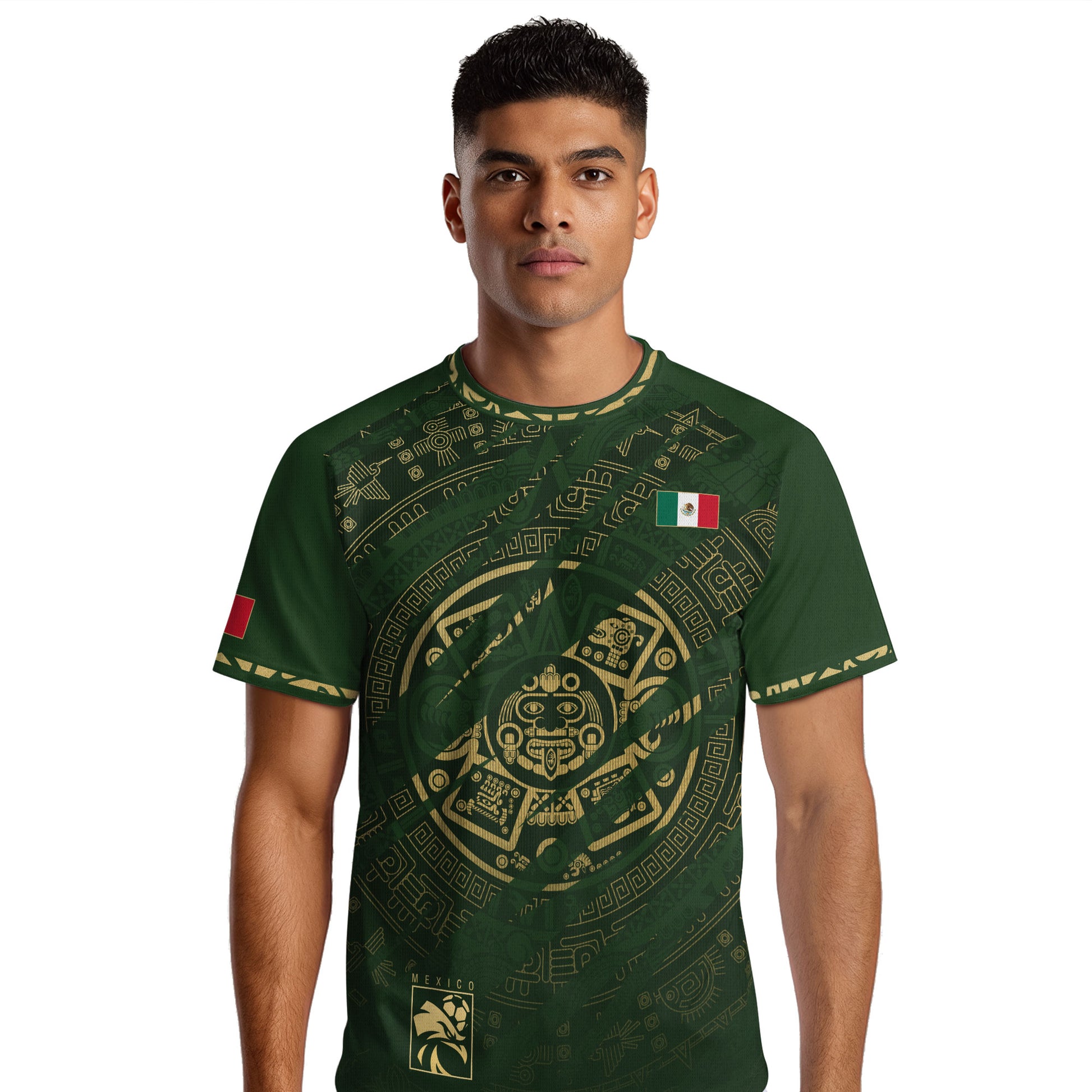 Mexico Green Gold Aztec Calendar National Pride Mens Football Soccer Jersey